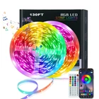 💡Super Multicolor Lights: The LED lights has 16 million full color + 22 dynamic modes.Colorful lights can create different atmospheres, you can use the LED lights for bedroom, kitchen, living room, game room,etc.Enjoy your colorful life. 🎶Lights that Sync with Music: The lights has a music mode,it built-in microphone,which can change color, rhythm with the music.It's so much fun! Let's dance with the music,enjoy the happy hour 📱Bluetooth LED Lights with IR Remote Control: The support IR remote & Bluetooth APP control,APP has more functions to choose from. You can freely set the color,brightness,mode and timing function.Design your dream world as you like ⚙️Widely Used Cutable Strip Lights: The 130ft long led lights can be DIY cutting,it can be used for home decoration,suitable for Christmas,Halloween,etc.Note that connectors are required after cutting(The product does not contain connectors) Superior Quality: The LED light strip use 5050 RGB beads,equipped with high-quality 24V adapter,which is more energy-saving and environmentally friendly, safe and secure.It is not waterproof,use it indoors.