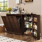 Double 13-Gal Tilt-Out Trash/Recycling Cabinet, Kitchen Island with Shelves, Doors, and Charging Outlet for Living Room, Dining Room, Kitchen, Brown Product Description NOTE: Professional Installation would be Highly Recommended. Description: 1. Color: Brown Oak 2. Material: Manufacture Wood + MDF 3. Handle Material: Steel / Iron 4. Fits The Size of Trash Bin : Dual Trash Bin,13 Gallon 5. Number of Doors : 3 6. Number of UL Outlets : 2 7. Number of USB Port : 2 8. Room Type: Kitchen / Dining Room / Entryway Features: Expansive Design; Shelves Can Be Adjusted. The Tilt Out Trash Can Cabinet features a large countertop and versatile storage, including adjustable shelves for dishes and snacks, and metal organizers for spices. It conceals double trash cans and offers additional shelving for items like pet food and seasonings. Ideal for kitchens, dining rooms, or laundry areas, this cabinet also includes a charging station and extra storage racks for optimal organization. Tilt-Out Trash Bin Storage The Tilt-Out Trash Can Storage cabinet features a design that conceals two compartments, each capable of holding a 13-gallon trash can (not included). Its tilt-out mechanism makes disposing of kitchen waste easy and helps control odors and prevent pets from accessing the garbage. This practical solution keeps your kitchen clean and organized. Constructed with Premium Materials. The buffet cabinet is made from high-quality MDF and particle board, ensuring both durability and style with its cream white and brown finish. It is built to handle daily use with features like smooth rolling wheels for easy movement and anti-tipping designs for added safety and stability. These thoughtful details ensure a reliable and secure addition to your kitchen or living room. Effortless Charging The kitchen cabinet is designed for convenience, featuring a spacious wooden countertop for meal preparation and easy cleaning. It includes a built-in power station with 2 AC outlets and 2 USB ports, allowing you to effortlessly charge devices and power appliances like mixers and blenders. This cabinet not only hides trash with its double tilt-out system but also serves as a charging hub, ensuring your devices stay powered without the need to search for outlets. Enjoy a fully equipped kitchen that keeps you connected and efficient while cooking. Easy Assembly and Customer Service The trash can cabinet is designed for quick and easy assembly, with clear, numbered instructions and labeled parts, ensuring a straightforward setup process. Our commitment to excellent customer service means any questions or concerns you have will be promptly addressed. Purchase today to enjoy a tidy and organized space that your family will appreciate. Dimensions: 1. Product Dimensions: 58.3"L x 14.17"W x 37.4"H 2. Tilt-out Door Dimensions: 18.5"L x 33"H 3. Pull-0ut Door Dimensions: 18.5"L x 3.34"D x 36.4:H 4. Shelving Cabinet Dimensions: 10.6"H x 9.8"D 5. Trash-bin Dimensions: 16.5"L x 11"W 6. Capacity: 13 Gallon Trash (Trash Can Not Included) 7. Item Weight: 108.02 lbs 8. Power Cord Length : 6.5 Feet 9. UL Outlets Capacity : 120V / 2A 10. USB Port Capacity : 5V / 2A Package Included: 1 X Cabinet 1 X Assembly Instruction NOT INCLUDED IN PACKAGE: Trash Can *Additional Notes: - This pantry is designed for indoor use only. - Avoid placing heavy objects on top of the cabinet. - Clean the cabinet with a soft, damp cloth. - Do not use harsh chemicals or abrasive cleaners Shipping 1. Normally the item will be dipatched within 1 business day if payment is cleared before 12pm PST. 2. Please verify the correct shipping address in your PayPal account before making the payment. We only dispatch the item to the address that is sent to us at the time of checkout. 3. We don't ship to Hawaii, Alaska, Puerto Rico, APO/FPO/PO Boxes. 4. We don't provide local pick-up service. 5. Normally we will use USPS, UPS, FedEx & LTL to dispatch items. Payment 1. We accept PayPal and credit card. 2. We will ship to the confirmed Paypal shipping address that is provided with the payment only. Return 1. 30 days Money Back Guarantee. 2. Please contact our customer service to receive a RMA form first if want to return the item. 3. All returned items MUST in new condition with the original package. Contact If has any problem, please contact us by sending an ebay message. Our customer service will resolve the problem as soon as possible. On Nov 12, 2024 at 19:54:59 PST, seller added the following information: