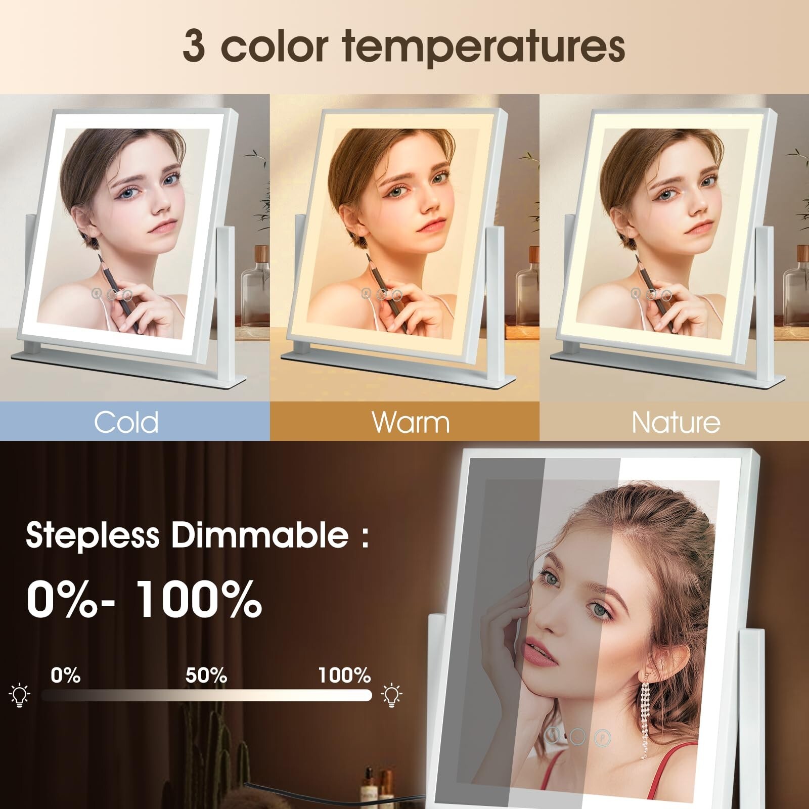 Vanity Mirror with Lights, 14 Inch Hollywood Lighted Makeup Mirror,4 Sides Lighting with 3 Color temperatures,Stepless Dimmable,10X Magnification, Smart Touch Control, 360°Rotation Product Details Brand: SJAIDASIFTM Room Type: Bedroom, Living Room Shape: Rectangular Product Dimensions: 12.5"L x 11.4"W Frame Material: Metal Brand: SJAIDASIFTM Room Type: Bedroom, Living Room Shape: Rectangular Product Dimensions: 12.5"L x 11.4"W Frame Material: Metal Mounting Type: Tabletop Mount Special Feature: Energy Efficient, Dimmable, 360 Degree, Adjustable Color: White Number of Items: 1 Material: Glass, Metal Assembly Required: No Manufacturer: SJAIDASIFTM Size: 12.5"L x 11.4"W Item Weight: 3.85 pounds Country of Origin: China Item model number: SV4S Date First Available: August 30, 2024 3 Color Temperatures This Vanity mirror has 3 colors (Cold,warm,nature) to meet all of your makeup occasions. Cold light is for your commuting makeup, warm light is for your party makeup; Natural light is for outdoor makeup effects Stepless Dimming The makeup mirror brightness can be adjusted effortlessly to create the perfect lighting environment. This feature allows the makeup mirror to adapt to different lighting conditions and personal preferences, meeting your personalized needs Four-Sided Glow Even lighting from all four sides creates a shadow-free, well-lit area. The main function of a four sided illuminated makeup mirror is to provide sufficient and even light, ensuring that every detail of the makeup is clearly visible, making it easy to create flawless skin. 360-Degree Rotation Rotate the mirror to any angle for ultimate flexibility.The 360 degree rotating design of the makeup mirror allows you to easily adjust the angle and direction of the mirror according to your own needs, especially suitable for occasions that require fine makeup or makeup adjustments, such as touch ups or adjusting details. High-Definition High-Definition, Provides a clear, undistorted reflection for precise makeup application. High-definition mirrors is to help you apply makeup more accurately, provide a true skin tone restoration, and make the makeup flawless Memory Function Recalls your last settings for consistent use each time.The color temperature memory function allows you to set the color temperature according to your preferences, and the makeup mirror will also remember this setting to ensure that you get the most suitable lighting conditions every time you use it.