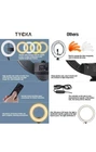 【14" LED Ring Light】14"/35.6cm ring light with 336pcs super energy-saving led lights, 3200K-6500K dimmable color temperature allows you to freely adjust the light, providing the most appropriate lighting and give you fully control for the lighting effection. Aluminum Alloy Lampshade ensures the ring light is durable and anti-fall. Easy to set-up (power adapter) , portable in carrying bag whether indoors or outdoors photography with different shooting experience. 【4 Colors & 10 Brightness Levels】TYCKA LED Selfie Ring Light provides 4 color light modes: white, warm yellow, warm white & night light. Use the remote control to adjust its brightness from 0% to 100% to ensure the light is soft and brighter in each lighting mode. Just simply control the remote control and you will be able to control all the light sources and color. It can be widely applicable to any scenes shooting & lighting, you will be able to choose the best lighting solution for yourself. 【Adjustable Tripod Stand and Compatibility】It is compatible with most devices smartphones as welll as dslr cameras connector. The phone holder extend to 7.6cm/3in and adjustable tripod stand which allows you to extend the stand height to 200cm/78.74 in three level. It is Must-Have Live Streaming Tool. A great starter ring light kit for beginners,a wonderful present for you and your friends! 【Must-Have Live Video Tool】Whether you are a lifestyle vlogger, a creative Youtuber, or a beauty & fashion influencer, this amazing ring light is absolutely one of the best tools to shooting fill light. It works pretty well when making live streams, filming makeup/nail art videos, even being used as Shooting fill light. Blogging, Selfie Photography, YouTube video shooting, making up and live stream, it can meet your different needs.