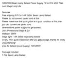 You may also like 7R 230 12R 280W Beam Lamp Bulb With Ballast Power Supply for MSD Stage Light 27.85 USD Free shipping 250W MSD 8R Lamp Sharpy Beam Moving Head Replacement Bulb Stage Show Lighting 33.85 USD Free shipping 380W MSD 18R Lamp Sharpy Beam Moving Head Replacement Bulb Stage Show Lighting 54.85 USD Free shipping 10R 260W Beam Lamp Ballast Power Supply Fit for R10 MSD Platinum Stage Long Life 38.81 USD 40.85 USD Free shipping 5% off 295W MSD 14R Sharpy Beam Lamp Bulb Fit for Moving Head Light Beam Stage Light 33.85 USD Free shipping 18R 380W Beam Lamp Ballast Power Supply Fit for R18 MSD Platinum Stage Long Life 49.85 USD Free shipping 440W MSD 20R Lamp Sharpy Beam Moving Head Replacement Bulb Stage Show Lighting 60.85 USD Free shipping Replacement Bulb for 7R 230W Stage Lamp Moving Sharpy Beam Head Lighting 24.85 USD Free shipping 330W MSD 15R Lamp Sharpy Beam Moving Head Replacement Bulb Stage Show Lighting 47.36 USD 49.85 USD Free shipping 5% off Replacement Bulb for 10R 260W Stage Lamp Moving Sharpy Beam Head Lighting US, 37.85 USD Free shipping 17R 350W Beam Lamp Ballast Power Supply Fit for R17 MSD Platinum Stage Long Life 46.85 USD Free shipping 275W MSD 9R Lamp Sharpy Beam Moving Head Replacement Bulb Stage Show Lighting 33.85 USD Free shipping 14R 295W Beam Lamp Ballast Power Supply Fit for R14 MSD Platinum Stage Long Life Features: Free shipping FIT For 14R 295W Beam Lamp Ballast Please do not connect Ignitor cord at first Please make sure that your ignitor is in good condition at first, then you can connect the ignitor cord. otherwise the power supply will get burned. Use : Professional Stage & DJ Wattage: 295W Stage light : 14R 295W stage lamp ballast we DO NOT guide installation after you get package, thanks for kindly understanding! price for ballast (power supply) 14R 295W Package Included: 1 Pcs Beam Lamp Ballast -About US Founded in 2012, VIPJQ have professional development and sales, and are involved in various products, providing customers with various high-quality products. Since its establishment, VIPJQ has always adhered to the service concept of "customer first" and the management concept of "pursuit of quality", and is committed to providing customers with high-quality original designs. We commit to provide you the best innovative, quality products & professional services with competitive prices. We value every customer, and we look forward to providing solutions for your business needs to help your business achieve its goals, please contact us immediately! We are all about you! We are a Japanese seller,but with large warehouse in USA. We are profesional on Auto Parts,Car Parts,Motorcycle Parts,3C,other hot sale items and so on. We aim to provide to customers high quality product and best service. -About Shipment&Returns The item usually will be dispatched within 3 days after you ordered.All are free shipping. And it usually takes 3-10 working days to delivery depends on buyers' address or other majeure on the way. If you are not satisfied with the items and want to return the item,we hope you could message us first,we will give you the return details, we think we could give you the best service to save your time and money.Thank you. -About Feedback&Customer Service If you are enjoy your shopping here,not only enjoy the items but also the service,we are appreciate you could give us a 5-star feedback. If you are not satisfied with the item,before you give us the negative feedback,we hope we could give you the best solution through our commutication. We think we could do it if you give us the chance.Thank you.