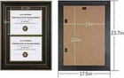 Space Art Deco, Gold Black Design Diploma Frame Black Over Gold Double Mat for 8.5x11 Inch Certificates and Documents Sawtooth Hangers Wall Mount (Vertical, 14x20 for Two Openings, Ornate Gold) Brand New Aged Gold Color Accented Antique Style Black Frame Fit For: Two 8.5x11 Certificates/Documents (with mat) or One 14x20 Picture/Photo (without mat) Includes: One 14 x 20 Antique Design Inspired Black Frame and One Double Mat with Two Openings for 8.5 x 11 Certificates, Documents, Degree,Award,Graduation,Pictures, and Photos (Both Opening Size: 8x10.5 Inches) Features: Picture Frame Molding Design, Inner Gold Bead Trim, Black over Gold White Core Bevel Cut Double Mat, Saw Tooth Hangers for Wall Mounting, Flexible Metal Back Points. Perfect for showcasing any award certificates, diplomas or other related documents! Enjoy saving space on your wall with this 2 in 1 frame! These frames were inspired by the design from classic and traditional works. While not as lavish and extravagant as the frames from the past eras, it still has its own charm and is definitely an eye catcher. This frame is designed to hold two 8.5 x 11 inch certificates, diplomas, and other documents and pictures. Celebrate gradating or receive a distinguished award by showcasing it in this beautiful black and gold frame. Black and Gold are two colors made to compliment your choice. Shipping All items are shipped and fulfilled through our own facilty We ship within Three business days of payment, usually sooner. We use a selection of shipping services such as UPS, FedEx, USPS etc. We only ship to the lower 48 states, no APO/FPO addresses or PO Boxes allowed. Local pickups and combined shipping options are not provided at this time. Return You can return a product for up to 30 days from the date you purchased it. Any product you return must be in the same condition you received it and in the original packaging. Please keep the receipt. Payment We accept payment by any of the following methods: PayPal Please pay as soon as possible after winning an auction, as that will allow us to post your item to you sooner! Feedback Customer satisfaction is very important to us. If you have any problem with your order, please contact us and we will do our best to make you satisfied. Contact Us If you have any queries, please contact us via ebay. We usually respond within 24 hours on weekdays. Please visit our eBay store to check out other items for sale! Thank you for shopping at our store.