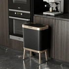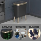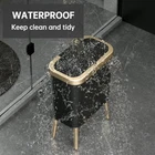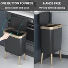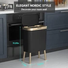 Artistic and Practical - Nordic black kitchen trash can with beautiful gold edge and high legs, looks elegant and stylish. High feet design kitchen garbage can makes it convenient and labor-saving to throw rubbish without bending over. And it's easy to clean the floor without moving it due to its elevated design. Large Capacity But Space Saving - Benefit from its slim shape, have 15 Liters/4 Gallons big capacity while be compact enough to fit into most narrow spaces, which is your perfect choice for wherever space is limited. Trash Can with Lid - Office garbage can lock garbage and unpleasant smell inside, keeps your room clean and fresh. Tight lid ensures that your trash stays inside, preventing any spills or messes. It also prevents pets from knocking over the trash can, which will dirty themselves and your room. Easy to Use & Durable - Just press the key, the lid will automatically pop up, easy to operate; Made of shatter-resistant plastic material that is sturdy and more durable. Also, free of BPA, which is safer when you use it. Size - 19inch*13inch*7.7inch (without legs: 13.4inch*13inch*7.7inch).