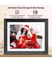 This is a Moman 10.1" WiFi digital picture frame in black, featuring a touch screen HD IPS display with a 16:10 aspect ratio. It has 32GB of internal memory capacity and supports media formats like MPEG 4 and JPEG. The digital photo frame is ideal for displaying photos and videos wirelessly through Wi-Fi, making it a great Christmas gift for loved ones.