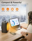 【3 Modes with Thermostat Control】3 Heat Settings; LOW: 900 watts of heat; HIGH: Output heat faster and hotter at 1500 watts; FAN: Blow out cool winds. Electric space heater with thermostat manual control, designed for comfort and warmth, keeping your small room at a set temperature and saving your electricity bills. 【1S Fast Warm-Up】With the PTC ceramic heating technology and high-speed fan, this small space heater can warm you in 1 second! Range up to 200 sq.ft. Saving electricity bills by heating the small space required, instead of using other centralized indoor space heaters. Stay warm and comfortable in your space in the cold once you pick up this energy efficient space heater. 【Multiple Advanced Safety Design】 Overheat and Tip-Over Protection: Aut-off when accident happens, perfect for family with kids and pets; V0 Flame Retardant Material; ETL Listed. The ceramic space heater, a solid choice for small room,office, living room and bedroom! 【Quiet Space Heater】The operating sound of the office sapce heater is less than 38 dB, quiet enough for most people to use in a bedroom while sleeping, a perfect desk space heater never disturbs you when you sleep or work. 【Space-Saving Desk Space Heater】Dimensions: 6.3 x 5.5 x 9.3 inches; small space heater for office under desk quiet, warm and space-saving. Warm up your body/feet/legs in an instant, but only take a small space. Easy-to-move portable space heaters for indoor use with convenient carry handle and 6 Ft long cord.