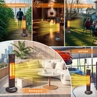 Description: 1. Material: These outdoor heaters are made of durable aluminum alloy that is resistant to rust and wear and tear for long-lasting performance. 2. Design: This patio heater is equipped with a 24-hour timer, which allows you to set a duration from 1 to 24 hours to ensure quiet, uninterrupted operation. Its draft-free, noise-free, odor-free performance is perfect for sensitive environments, providing a peaceful atmosphere for work and leisure. 3. Function: These UL-recognized patio heaters feature triple safety protection, including automatic shut-off sensors for wind and tip-over accidents. In the event of overheating, they automatically stop heating to ensure maximum safety. The enlarged base is made of flame-retardant materials for added stability and is certified by UL for safe use. 4. Tip: Our infrared heaters feature high-efficiency carbon fiber elements for fast, focused heating and instant comfort. Designed to heat from the ground up, they are perfect for families and friends gathering in any setting, indoors or out. 5. Occasion: Our outdoor patio heaters offer 3 heating settings of 500W/1000W/ 1500W to ensure personalized comfort for a variety of spaces. They are suitable for both indoor and outdoor use, providing adjustable warmth for large areas such as balconies, cafes and commercial events. Package Include: 1x Outdoor Patio Heater