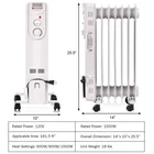 Efficient Heating & Adjustable thermostat: With x 7 oil-filled thermal slots, which is 5” width and filled with 4 lbs oil, radiator heater provides energy-efficient heating for medium to large rooms that need constant heat in the winter. The heater equips with 3 heat setting(600w, 900w,1500w) and adjustable thermostat, you can customize the temperature according your heating needs. Quiet Operation & Sealed Oil: Silent operation makes it perfect for any room, since it won’t bother you from work, sleep, chat or anything. Especially in night when you are in sleep, quiet operation will give you beautiful dream. The heater is permanently sealed with oil and it’s never need to be refilled. Easy to Portable & Storage: The heater equips with four heavy-duty caster wheels, which provides easy movement from this room to another room. And when cold season passed, you can take the base off and wrap the cord in the front of the heater, which ensures tidy and make the storage easier. Safety Guarantee: The heater will shut off automatically when it’s overheat. And when the heater tip over the heater will also shut off immediately. Thermal slots maintain a low surface temperature, don’t worry that you will be scalded accidently. Dimension of Oil Heater : Size: 14”x 10”x 25.6” (LXWXH), fins width:5”, oil volume: 4lbs, power supply: 120 volts AC, 60Hz, power consumption: 600W (low heat setting) 900W (medium heat setting) 1500W (high heat setting), product weight (lb.): 18 lbs