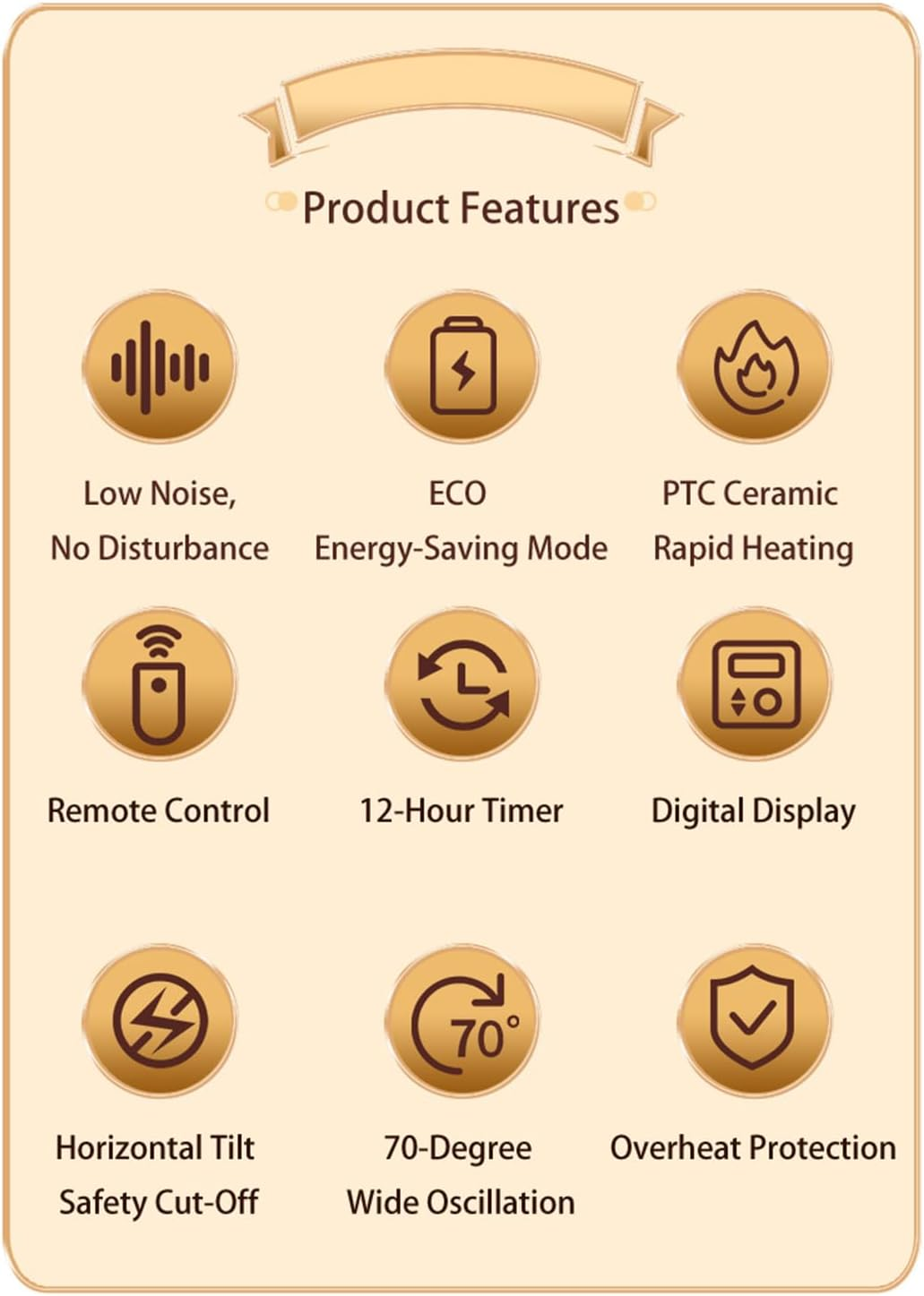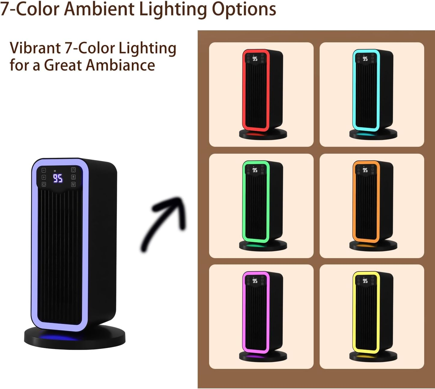 Store New Arrivals Add to Favorite View Feedback Contact Space Heater, 1500W PTC Heater with ECO Thermostat System, Oscillating 70°, 12H Timer, Heaters for Indoor Use with Remote Control, 8 Color Changing Lights, Safety Features for Home Bedroom, Office Description Item model number NFJ01 Room Type Living Room, Bedroom, Home Office Indoor/Outdoor Usage Indoor Mounting Type Tabletop Mount Color Black Country of Origin China Power Source ac Heating Method Forced Air Item Weight 3.8 pounds Max Temperature Setting 9E+1 Degrees Fahrenheit Fuel Type Electric Voltage 1.2E+2 Volts Recommended Uses For Product Office Form Factor Tower Special Feature Portable, Energy Efficient, Child Lock, Oscillating, Overheat Protection Product Dimensions 7.08"D x 7.08"W x 13"H Heat Output 1500 Watts Burner type Radiant Fast Heating: Experience rapid warmth with the 1500W PTC ceramic heating element, ensuring your space heats up quickly and efficiently ECO Thermostat System: Maintain a comfortable temperature with the energy-saving ECO thermostat system, automatically adjusting to your desired warmth level Wide Oscillation: Enjoy even heat distribution throughout your room with the 70-degree oscillation feature, covering a larger area for maximum comfort. Convenient Timer & Remote Control: Set the heater to run for up to 12 hours with the built-in timer, and easily control all functions from a distance with the included remote control Safety Features: Ensure peace of mind with the child lock function, activated by pressing the "+" and "-" buttons for 3 seconds. The heater automatically shuts off if tilted or lifted, and continues to cool down safely after use to prolong its lifespan. Color-Changing Lights: Enhance your space with 8 color modes, including 7 single colors and 1 mode with 7-color changing lights, adding a cozy and personalized touch to your room Product Description Multifunctional Electric Space Heater Fast Heating: Experience rapid warmth with the 1500W PTC ceramic heating element, ensuring your space heats up quickly and efficiently. ECO Thermostat System: Maintain a comfortable temperature with the energy-saving ECO thermostat system, automatically adjusting to your desired warmth level. Wide Oscillation: Enjoy even heat distribution throughout your room with the 70-degree oscillation feature, covering a larger area for maximum comfort. Convenient Timer & Remote Control: Set the heater to run for up to 12 hours with the built-in timer, and easily control all functions from a distance with the included remote control. Color-Changing Lights: Enhance your space with 8 color modes, including 7 single colors and 1 mode with 7-color changing lights, adding a cozy and personalized touch to your room. Safety Features: Ensure peace of mind with the child lock function, activated by pressing the "+" and "-" buttons for 3 seconds. The heater automatically shuts off if tilted or lifted, and continues to cool down safely after use to prolong its lifespan. Product Feature ECO Thermostat System Maintain a comfortable temperature with the energy-saving ECO thermostat system, automatically adjusting to your desired warmth level. Horizontal Tilt Shut-Off Automatic power cut-off when machine tilted Wide Oscillation Enjoy even heat distribution throughout your room with the 70-degree oscillation feature, covering a larger area for maximum comfort. Safety Child Lock Ensure peace of mind with the child lock function, activated by pressing the “+” and "-" buttons for 3seconds. The heater automatically shuts off if tilted or lifted and continues to cool down safely after use to prolong its lifespan. 8 Color-Changing Lights Modes Enhance your space with 8 color modes, including 7 single colors and 1 mode with 7-color changing lights, adding a cozy and personalized touch to your room. ABOUT US We offer the best prices around on high quality products. Our E-store includes media such as books, movies, music and games while offering electronics, toys, sporting apparel, clothing, tools, general home, garden items and more. SHIPPING We are always working hard to ensure your package arrives as soon as possible. Please understand that some factors like weather, high postal traffic, and the performance of shipping companies are outside of our control. We offer free shipping to the lower 48 states and ship within 2 business days of payment, usually sooner. We do not accept P.O. Boxes. Please provide a physical address. For shipping outside of the continental USA, we only use eBay's Global Shipping Program.The item is shipped to KY and then sent to the rest of the world. International customers are responsible for all duties and taxes. Continue to check out in order to calculate costs for shipping the item to your country. Messages regarding eBay's Global Shipping Program MUST be directed at eBay EXCLUSIVELY. RETURNS We offer a 30-Day Return Policy on items which you are not completely satisfied with. You have the option for a full-refund or an exchange of the item. No returns are available on items shipped outside of the USA. PAYMENT We accept PayPal. CONTACT US This page content is yet to come Please ad us to your favorite seller and visit again later Thank You CUSTOMER SATISFACTION We try our very best to make sure every customer is completely satisfied. If there's a problem, message us! We're happy to help. WE ACCEPT Copyright © 2021 AutoDS. | All Rights Reserved