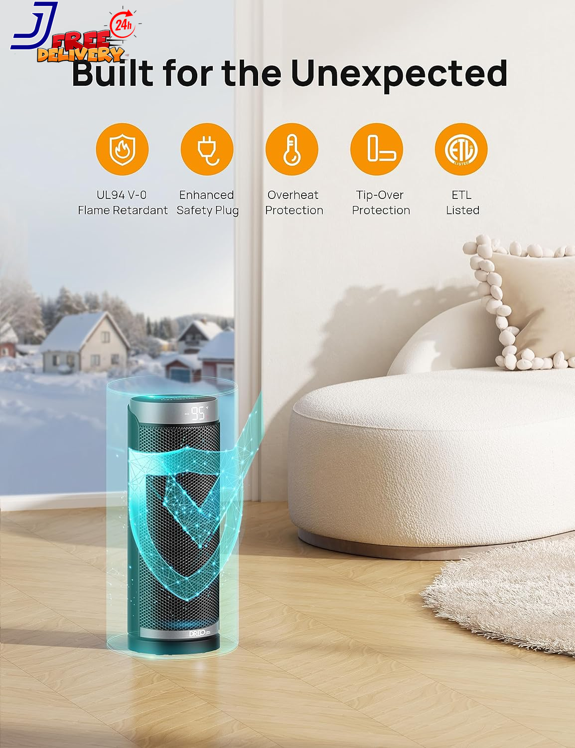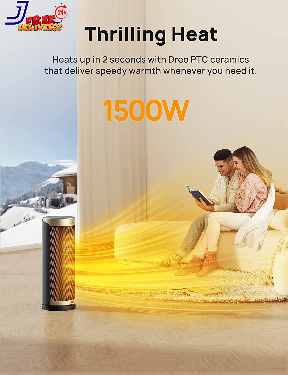 Fast Shipping On All Items 30 Days Money Guarantee Customer Support Excellent Service 100% Satisfaction Satisfaction Guaranteed Space Heater 1500W PTC Heaters for Indoor Use with Remote 70° Oscillation 1-12H Specification Item model number DR-HSH003 Country of Origin China Max Temperature Setting 95 Degrees Fahrenheit Min Temperature Setting 41 Degrees Fahrenheit Room Type Kitchen, Bedroom, Living Room, Home Office, Study Room Product Dimensions 5.9"D x 5.89"W x 15.79"H Burner type PTC Heating Coverage 200 sq.ft. Form Factor Tower Indoor/Outdoor Usage Indoor Number of Speeds 5 Item Weight 4.63 pounds Special Feature function(f) {var _np=(window.P._namespace("DetailPageProductOverviewTemplatesJava"));if(_np.guardFatal){_np.guardFatal(f)(_np);}else{f(_np);}}(function(P) { P.when('A').execute(function(A){ A.on('a:truncate:po-attribute-truncate-1:updated', function(data) { var isTruncated = !data.truncateInstance.getIfTextFits(); var seeMoreElement = document.getElementById('po-attribute-see-more-id-1'); if(seeMoreElement) { seeMoreElement.style.display = isTruncated ? '' : 'none'; } }) }); })); Adjustable Thermostat from 41 to 95°F, 70° Wide Oscillation, LED Digital Display, Remote Control with Batteries, Built-in Tip-Over Protection See more Amperage 12.5 Amps Mounting Type Floor Mount Color Black Power Source Corded Electric Heating Method Forced Air Cable Length 6 Feet Batteries 1 Lithium Metal batteries required. (included) Fuel Type Electric Voltage 120 Volts Recommended Uses For Product Office, Garage, Home Item Weight 463 Pounds Heat Output 1500 Watts Size 16 inch 5.89 "h x 5.9 "h x 15.79 "h. Weight: 1500.0 oz Item Description ETL-Certified Safety: Made of V0 flame-retardant materials with multiple safety features including built-in smart tip-over protection, overheat protection, 12-hour timer, 24-hour automatic power off without interaction, V0 flame retardant 2-prong plug, and sturdy 6ft long flat power cord. Safe and worry-free all-day use. Safety Reminder: Please do not use with an extension cord. Only plug directly into the wall outlet. Fast Indoor Ceramic Heater: Powerful 1500W PTC ceramic heating allows this space heater to heat up in seconds, suitable for warming up spaces in the home including bedrooms, basements, garages, living rooms, and can also be used in offices, dorms, hot yoga studios, etc. Heating Coverage:200 sq.ft. Quiet Heating: 40dB - almost as quiet as a library. The fan wheel uses oblique airflow technology, which effectively reduces wind noise and makes the room heater 12% quieter than traditional electric heaters. Calm airflow lets you sleep soundly and work undisturbed during the cold winter Uniform Heating: Experience enhanced comfort in large rooms with the exclusive trackball system, engineered for smooth and whisper-quiet oscillation. The 70° wide-angle oscillation, with a lifespan of over 750,000 cycles, boosts heating coverage by 20%, which helps distribute the warm air more evenly towards the room's corners Energy Efficiency: Save on energy bills and live more sustainably. With a built-in precise temperature sensor, the smart ECO mode adjusts the working mode independently (with a low of 900W and high of 1500W to efficiently maintain your desired indoor temperature) based on the ambient temperature Usage Comfort: The touchscreen is placed on top of the heater for easier reach, and the remote provides full access from up to 26 feet away. The 16-inch compact design makes our space heater a real space saver that is easy to move around with its hidden handle. Cord Lenth: 6 ft / 1.8 m Product Description The video showcases the product in use. The video guides you through product setup. The video compares multiple products. The video shows the product being unpacked. Heat Up Your Day Without Delay Powered by Dreo HeatLeap System A Peaceful Presence for Your Winter Multiple Safety Protection Tips Over? Not a Problem! Built-in tip-over protection automatically powers down if the heater tips over. Never Flames Made with special flame-retardant materials, as per strict UL94-V0 standard. Spark-proof even when under prolonged exposure to flame or heat. Never Too Hot Overheat protection shuts the heater off when reaching the overheat limit, so you’ll never worry about it getting too hot. Always Secure Reinforced safety plug with unbendable blades. Keep your space safe all year round without short circuits, bent plug and other risks. Dreo Portable Space Heater Family Add to Cart Add to Cart Add to Cart Add to Cart Add to Cart Add to Cart Add to Cart Customer Reviews 4.5 out of 5 stars 11,235 4.6 out of 5 stars 10,136 4.6 out of 5 stars 1,374 4.4 out of 5 stars 9,540 4.3 out of 5 stars 539 4.2 out of 5 stars 1,714 4.4 out of 5 stars 887 Price $74.99 $ 74 . 99 $35.99 $ 35 . 99 $59.99 $ 59 . 99 $89.99 $ 89 . 99 $129.99 $ 129 . 99 $99.99 $ 99 . 99 $99.99 $ 99 . 99 Height 16" 10" 16" 25" 30" 26" 16" Mode Options H1/H2/H3/ECO/Fan H1/H2/H3/ECO/Fan H1/H2/H3/ECO/Fan H1/H2/H3/ECO/Fan H1/H2/H3/H4/H5/ECO/F1/F2/F3 H1/H2/H3/ECO H1/H2/H3/ECO/Fan Adjustable Thermostat 41-95 °F (In 1°F Increments) 41-95 °F (In 1°F Increments) 41-95 °F (In 1°F Increments) 41-95 °F (In 1°F Increments) 41-95 °F (In 1°F Increments) 41-95 °F (In 1°F Increments) 41-95 °F (In 1°F Increments) Oscillation 70° — 70° 70° 30°-60°-90°-120° 360° Three-dimensional Heating 30° manual oscillation Sound Level 34 dB 34 dB 34 dB 37.5 dB 25 dB No noise 28dB Built-in Timer 1-12 H 1-12 H 1-12 H 1-12 H 1-12 H 1-24 H 1-24 H Remote Control ✔ ✔ ✔ ✔ ✔ ✔ ✔ ETL-Listed ✔ ✔ ✔ ✔ ✔ ✔ ✔ Power 700-1500 Watts 1000-1500 Watts 1000-1500 Watts 900-1500 Watts 300-1500 Watts 600-1500 Watts 900-1500 Watts About us We offer the best prices around on high quality products. Our E-store includes media such as books, movies, music and games while offering electronics, toys, sporting apparel, clothing, tools, general home, garden items and more. Shipping We are always working hard to en