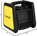 Powerful: 5100 Btu/1500 Watt/12. 5 Amps Capacity Heats Up To 165 Sq. Feet. Versatile: Two (2) Heat Settings With Adjustable Thermostat Let You Choose How Much Heat You Need. Fast Heat: Heats Up In Seconds To Warm Your Space. Small Footprint: Compact, Space-Saving Design Easily Fits On A Desk, Workbench Or Anywhere In The Home. Take It With You: Comfortable Built-In Handle Allows For Easy Carrying. The STANLEY electric utility space heater has a 1500-watt capacity with two heat settings. This compact-sized heater is ideal for desks, workbenches, and anywhere in the home. This heater gives you quiet heat where you want it. The STANLEY electric fan space heater is built of strong, long-lasting construction. It has a built-in handle and a portable, compact design. The whisper-quiet fan makes this heater perfect for work, home, or school.