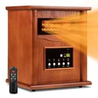 This is a 1500W space heater with a sleek wood frame design that includes a remote control for convenient operation. It features an eco+ mode for energy efficiency and a child lock protection feature for safety. The heater is electric-powered and includes a timer for added convenience. Perfect for use in any room in the home, this space heater not only provides warmth but also adds a touch of style with its wood frame construction.