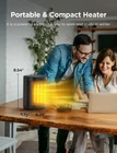 【Multi-functional Heater】: This compact heater has four functional modes that provide 1500 watts and 900 watts of heat, ECO mode maintains the ideal room temperature, which is both comfortable and power-saving. And fan only mode quickly cools the internal components while blowing cold air. Four modes to meet your different needs. 【Two-second Fast Heating】: The heater uses PTC ceramic heating technology, which can quickly generate heat in two seconds to keep you away from the winter cold. At the same time, it is made of flame-retardant material to ensure your safety of use. 【Built-in Safety Features】: We put safety first, and the heater is certified by ETL safety. The overheat protection function ensures that the heater will not cause overheating if it is turned on for a long time, and the flip device at the bottom can automatically shut off when the heater is tilted or fallen. In addition, there is a child lock function, providing you and your family with all-round safety. 【24-hour Timer】: The heater is equipped with a timer, allowing you to freely set the automatic shutdown time of the heater within the range of 1 to 24 hours, bringing convenience without worrying about bearing too many electricity bills. 【Compact and Easy to Use】: This room heater measures 6.30*4.72*8.54 inches with a built-in carrying handle, making it compact and lightweight. In addition, you can easily adjust various functions through the control interface on the top. It is suitable for bedroom, study, office and living room.