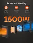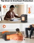 Versatile Heating Options: Enjoy three customizable settings - High Heat (1500 watts), Low Heat (900 watts), and Natural Wind, making this electric heater an ideal choice for warming your living or working spaces. The adjustable temperature control ensures quick and precise heating based on your thermostat preferences. Instant Warmth: Experience rapid heating with our advanced PTC ceramic technology, designed to deliver warmth in just 2 seconds. The dual wattage options (900/1500W) ensure consistent and reliable comfort. Enhanced Safety Features: Our heaters come equipped with built-in overheat and tip-over safety protections. The heater automatically shuts off if tipped over or if it overheats, ensuring safety for children and pets. A power indicator light provides clear status updates. Secure and Low-Maintenance: This compact heater includes safety measures against tip-over and overheating. Constructed with high-quality, flame-retardant materials to prevent fire hazards. Certified by the ETL, ensuring safety and peace of mind for your family during the cold months. Space-Efficient Design: With dimensions of 6.3" x 4.73" x 8.66" and weighing only 2.43 lbs, this heater is a space-saving solution for homes, dorms, studios, and offices. It utilizes convection heating to create a cozy atmosphere in any room. Space-Efficient Design: With dimensions of 6.3" x 4.73" x 8.66" and weighing only 2.43 lbs, this heater is a space-saving solution for homes, dorms, studios, and offices. It utilizes convection heating to create a cozy atmosphere in any room.