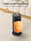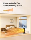 【2S Preheating】: A room goes from chilly to toasty in less than a minute. Put a heater under desk, warm feet and legs, and warm up the entire office in no time. An oscillating heater is perfect for taking the chill off in a large space. CFM: 200 【Ambient Intelligence】: 4 heating modes (2 level heating & ECO mode) and 1 fan mode. The built-in sensors support your basic thermostat function. The auto mode emits enough heat at 79 degrees. If the space is toasty, switching to eco mode helps save on bills. 【User Friendly】: Vertical heater is compact enough to fit in most spaces. With unique heating technology, this electric heater produces quiet heat. The remote makes it easy to not have to get out of bed to turn it on or off or change temperature. You can set a timer for your preference, from 1 hour to 24 hours. 【Safe for Kids & Pets】: ETL-Listed. Provide you with a safer and warmer winter. When children run and walk around it, don’t have to be afraid or overly cautious, as it has safety features like automatic shut off if it falls and overheating protection. And child lock for extra safety. 【Smart Tower Heater】: The buttons on the top are ridiculously easy to see and use. It looks pretty sleek and blends in with your room. The room heater for home office is incredibly simple to set up. Also has a remote that is more convenient.