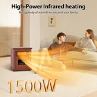1500-Watt Electric Infrared Quartz Heater Wood Cabinet with LED Digital Screen, Remote Control and Timer, Dark Walnut ECO mode is low carbon and energy-saving Remote control with up to 12 hours of timer for convenience. Multiple security protection ensures safety Lifeplus Electric Infrared Heater: The electric infrared heater can reach up to 1500-Watt, creating a warm and cozy private space for you. It is compact and portable, with a retro wooden shape, and is widely used in various places: bedroom, living room, dining area, office, etc. Using advanced infrared heating technology, it is quiet. There are 3 modes: ECO, 750-Watt and 1500-Watt. The ECO mode is low-carbon and energy-saving. Compared with other heaters, it not only provides you with more warmth, but also saves you more money. Equipped with a remote control and up to 12-hours of timer. Set a timer before going to bed or before going out, and it will automatically turn off when the time comes. The remote control brings convenience to your life, allowing you to control it as you wish. Multiple security protection can effectively protect the safety of you and your family, especially suitable for families with pets and children. It is an ideal choice whether it is used by yourself or as a gift to your relatives and friends. It can accompany you and your family and friends through a warm and unique winter. Amperage (A): 5 A Area Heated (sq. ft.): 120 sq ft Color: Walnut Color Family: Blue Control Type: Digital Fan Mode: Fan Mode Features: Tip-Over Safety Switch Heat rating (BTU/hour): 5200 Btu/h Heater Type: Quartz Heating Method: Forced Air Indoor/Outdoor: Indoor Location Use: Living Space Material: Resin Number of Elements: 3 Number of Heat Settings: 3 Pack Size: 1 Portable Heater Features: Energy-Saving Modes,Thermostat Power/Fuel Type: Electric Product Weight (lb.): 13.6 lb Returnable: 90-Day Room Size: Small Thermostat Settings: Adjustable Voltage (V): 115 V Wattage (W): 1500 W Certifications and Listings: cUL Listed Manufacturer Warranty: 1 Year Cord Length (in.): 71 in Product Depth (in.): 12.8 in Product Height (in.): 14.8 in Product Width (in.): 10.8 in