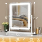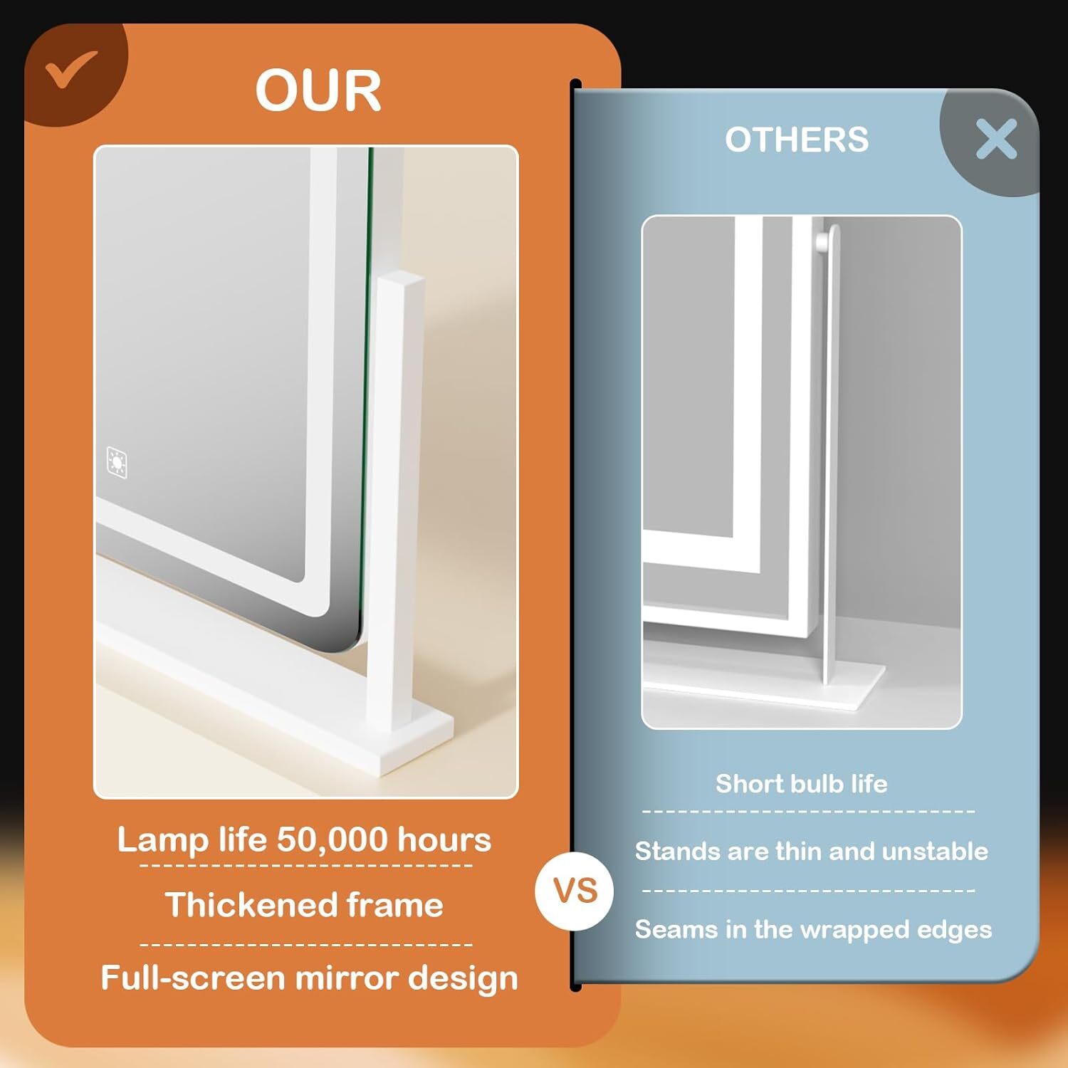 👍【Upgrade brightness】Most of the makeup mirrors with light bars on the market only have 120 light beads, which makes consumers feel that the lighting is not enough. We have improved on this! We have a full 180 light beads light bar per meter,which greatly improving the brightness of the makeup mirror. 👍【Smart Touch Control & Memory Function】Gvnkvn lighted smart mirror with lights has 3 touch buttons on the front. Simply short press "M" to change the color temperature, long press "P" to adjust the brightness. The built-in Memory Function can help remember your personal brightness settings, thusit will get in to the same light mode when you turn on the mirror next time. 👍【360° Free Rotation】The tabletop light up mirror features a 360° free rotation, allowing you to fix the body of the mirror at any angle you need. This ensures a perfect and comfortable perspective, making it easier and more convenient to enjoy your makeup routine. 👍【Perfect size professional mirror】dressing mirror large size: 15.2 "L x 12.7 "W, providing you with the perfect perspective; frame using strong aluminum alloy .of copper-free silver-plated glass, even if the glass is broken, it can maintain the bonding state without causing damage 👍【No Installation Required】The make up mirror doesn't require any complicated installation, all you do is plug the mirror in, and it’s working. 👍【Detachable 10X Magnification mirror】detachable 10X Magnification mirror helps you to see every detail clearly and apply delicate makeup for eyeliner, eyebrow and lipstick. 【NOTICE】Magnifying not the entire mirror,it is 4 inch detachable 10X Magnification 👍【NOTICE】Magnifying not the entire mirror,it is 4 inch detachable 10X Magnification On Dec 26, 2024 at 23:41:41 PST, seller added the following information: On Feb 18, 2025 at 22:50:39 PST, seller added the following information: