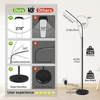 SUPER BRIGHT LIGHTING Dimunt floor lamp build-in 112 pcs high brightness LEDs, and with arcuated lights design which can increase light range, up to 1000 Lumen is enough for reading in living room or bedroom. 15 watts LED tall lamp instead of halogen lamps burning 100 watts, with 50000 Hours long lifetime, you don't need to replace any bulb, very convenient and saving energy. ADJUSTABLE COLORS and BRIGHTNESS This standing lamp customize your experience by choosing Lightness from 10%-100% brightness and stepless color temperature settings ranging from 3000K-6000K, and also has 5 customized model with remote control. One hour timing setting function make you and your baby feel safe and fall in sleep easily. SMART REMOTE and TOUCH CONTROL You can easily control the floor lamps without leaving the sofa and warm bed with the remote control (with a 52.5.8/16m range). Just press a button ,get the right brightness and color temperature for reading, working, leisure, breastfeeding and sleeping. SAFE DESIGN and EYE PROTECTION We designed the modern floor lamp with your safety in mind. Its weighted base and sturdy design makes it safe around children and pets because it will not easily tip. The LED floor lamp don't heat up so that you do not burn yourself when you touch it. Soft, non-flickering light offer you a cozy experience when reading or playing after long times. MEMORY FUNCTION and EASY TO INSTALL Memory Function can memory your brightness and color with last using. With soft and rotatable gooseneck makes you can control the lights to illuminate any item perfectly. Assembly is easy, just follow the included diagram; no additional tools or parts are needed. Please feel free to email if you need any assistance.