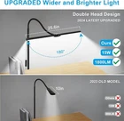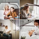 Unique Double Head Design: The LED floor lamp adopts a double head design, which can be expanded horizontally up to 180°. This innovative feature allows for high light output across a broad area or concentrated intensity over a specific zone. In comparison to other floor lamps in the market, our standing lamp provides a wider range of lighting options and angles for your convenience. Super Bright Led Lamp: The 15W/1800lm modern floor lamp is equipped with 160pcs high-brightness LED light beads, ensuring a brighter and wider luminous area. The LEDs has an impressive service life of over 50,000 hours, eliminating the need for any bulb replacements. The floor lamps for living room not only offer ample brightness but also prioritizes eye protection, ensuring a comfortable and safe lighting experience. 5 Level Brightness & Color Temperatures: With the inline switch on the floor lamp for bedroom, you can effortlessly adjust the brightness from 5% to 100% and fine-tune the color temperature from 2700K to 6000K. The different level settings are designed to fully cater to all your daily lighting requirements. Flexible Gooseneck & Smart Device Compatible: The esthetician light features a 360-degree adjustable and durable gooseneck, allowing you to effortlessly rotate and bend it into various angles. With the latest upgrades, this tall lamp works with smart outlets, enabling you to illuminate any corner as per your preference and providing convenient on/off control. Solid Base & Wide Application: The lamp base is crafed with sturdy metal to ensure stability and prevent accidental tipping or falling. The black lamp is designed to offer a versatile lighting solution, ideal for use as a lash light, tattoo light, craft light, reading light, or other specific task light. With harmonious blend of sleek look and functionality, this pole lamp adds an attractive touch to any space, whether placed in the living room, bedroom, office, or elsewhere.