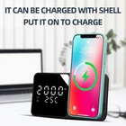 Features: 1. [3-in-1 Function] Time + temperature + wireless charging charging 3-in-1, clock digital display, can set three sets of alarms, temperature detection Fahrenheit / Celsius can be switched, 15W MAX wireless charging. (Support cell phones with wireless charging function) 2. [Multi-functional Charging] The phone can be charged horizontally and vertically, and it can be charged with the case on, charge all night long, and when it is fully charged, the trickle mode will be switched automatically to prevent overcharging. 3. [Type-C Port] Upgraded Type-C port, no distinction between positive and negative, strong current. 4. [Stand Design] Foldable stand, solid and non-shaking, silicone anti-slip pad design at the bottom, convenient, safe and easy to use. 5. [Adjustable Brightness] Brightness can be displayed according to the time, 1-4 levels of brightness increase sequentially. 6. [Suitable for multiple scenes] office/living room/bedside/study, etc. Specifications: Material: ABS Input voltage: 9V-2A 12V-1.5A Output power: 15W (MAX) Product size: 19*11*2.1cm Color: black/white Packing list: 1* Clock wireless charger 1* Charging cable 2* Instruction manual On Oct 19, 2024 at 02:18:43 PDT, seller added the following information: