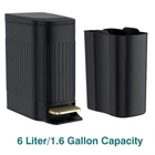 STYLISH OUTFIT:With its modern and decorative design and silent sealing lid, this trash can is a lightweight and compact trash can that fits with modern home decor QUALITY MATERIALS : Made of strong steel metal with a durable finish and the interior liner buckets are made of ABS materials with hole to hide the garbage bags SOFT CLOSE & STAY ONPEN LID:The trash can lid controls the motion for a soft close.Push the lid by hand to hold it upright when release the pedal STRONG STEEL PEDAL:This garbage can has strong steel foot pedal made of stainless steel,anti-rust and durablewhich is engineered to last over 150,000 steps FUNCTIONAL DESIGN:The shape rectangular and compact design fits well for narrow spaces and bathroom,bedroom,office,kids room,RVs,apartments,living room SIZE AND CAPACITY: Measures 11.6" x 5.9" x 12.0" high; Holds 1.4 Gallons/6 Liter Capacity WARRANTY:We can offer 1 year full-service manufacturer's promise.Please contact us,if the trash can you received is damaged