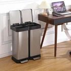 Step-Open Trash Can with Soft-Close Lid, Modern, Minimalistic for Home, Kitchen, Laundry Room, Office, Bedroom, Bathroom, with Inner Bucket Silent and Smooth Closure: The dual trash and recycling bins feature a soft-close lid mechanism that ensures quiet and gentle closure, creating a peaceful environment. The internal hinge design prevents lid slamming noise, minimizing disturbances and providing a pleasant user experience with its silent operation. The smooth closure adds a touch of convenience while maintaining a tranquil atmosphere in the kitchen or any space where the bins are used. Enhanced Kitchen Hygiene: Constructed from durable stainless steel, the recycling bin is resistant to fingerprints and dirt, making it easier to maintain a clean and hygienic kitchen environment. The bottom seals of the bins further prevent spills and leaks, contributing to a tidier and odor-free kitchen space. This improved hygiene helps create a healthier and more welcoming atmosphere in the kitchen, promoting cleanliness and sanitation. Hands-Free Operation Convenience: Each compartment of the garbage can features a sturdy steel pedal for convenient and hygienic hands-free operation. This hands-free operation is especially useful in the kitchen when hands are full or messy, allowing for easy waste disposal without the need to touch the bins. The hands-free design adds a level of convenience to daily waste management tasks, simplifying the process and promoting cleanliness. Efficient Space Utilization: Despite offering dual compartment functionality, the dual trash and recycling bins are designed with a space-saving layout that conserves space in small kitchens or homes with limited storage. The separate compartments for waste disposal and recycling maximize efficiency and convenience, providing a practical solution for households of all sizes. The compact design ensures that the bins can be easily integrated into various spaces without occupying excess room. Dual Compartment Recycling Convenience: The garbage can with a lid is thoughtfully designed with two separate compartments for easy waste sorting and recycling. This dual compartment feature simplifies waste management and encourages recycling practices in the home by providing a convenient way to separate and dispose of recyclable materials responsibly.