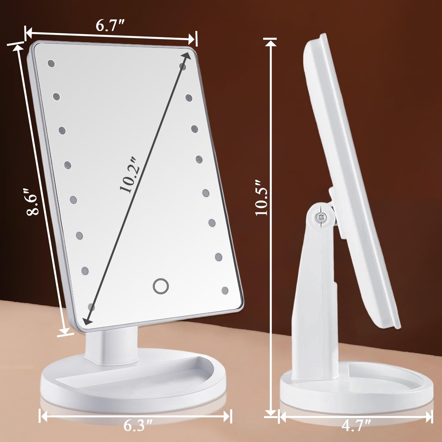 Lighted Makeup Mirror with Lights, Vanity Mirror with Lights, 16 LEDS Dimmable Desk Mirror with Light, Dual Power Supply, Gifts for Teenage Girls, Beauty Makeup Mirror, Dorm Room Essentials for Girls Description and features 【SMART TOUCH DIMMABLE】Our mirror with lights for makeup desk built-in daylight LED lights, bright but not dazzling. Designed with a highly sensitive touch screen sensor, simply touch it to turn on/off the lights and long press to adjust the brightness. 【DUAL POWER SUPPLY】Desk mirror with light can keep the USB plugged in or insert the batteries (Not include) to use it. This lighted makeup mirror is not rechargeable. 【180° ROTATION & STORAGE TRAY】The vanity mirror with lights can be freely adjusted, fixed at a comfortable viewing angle for makeup. Storage base can hold cosmetics or jewelry, etc. to meet our daily needs. 【SMART MEMORY FUNCTION】Make up mirror with lighting has a memory function to ensure that the same brightness of the lights before turning the switch off, make you easy to use the suitable light adjusted last time. 【GIFTS FOR TEENAGE GIRLS】The light up mirror is an ideal Christmas day gifts, Mothers day gifts, Valentines day gifts, Graduation gifts, Birthday gifts for teen girls, women. Our makeup mirror for desk come with unconditional technical support, please send email to seller for any questions. lighted vanity makeup mirror with lights for makeup desk with lighting travel desk led bathroom table mirror with lights Christmas mothers day teen girl gifts for teenage girls teen girls trendy stuff teenage girls gifts ideas dorm room essentials Return Policy ⦿ All our products come with a 30-Day Return Policy. If you would like to return your item and you are within 30 days of the purchase, and it is still in its original condition, you can return the item by contacting us through eBay messaging. ⦿ If you are not 100% satisfied, please let us know the Detailed Problem,We will give you a 100% satisfactory solution ⦿ If you received an incorrect, damaged, defective, or item not as described, contact us for a partial/full refund or replacement on our cost. ⦿ Free Shipping and Free Return 30-Days Money Back Guarantee. ☎ For all returned products, buyers MUST contact us for the returning address. Shipping ⦿ We do not ship to a different address. we will ship to the address you provide on the ebay only. Please check your address before purchase. ⦿ It should take 2-4 business days for the product to reach your destination. ⦿ If the product doesn't reach your destination within the time limit, please give it an additional 1-2 business days in case of postal delays and/or possible technical issues. ⦿ We use a selection of shipping services such as UPS, FedEx, USPS etc. ⦿ We ship only to the 48 contiguous states of America. We do not ship to Hawaii, Alaska, US Protectorates, APO/FPO addresses. Local pickups are not offered. ☎ If it takes any longer than that, please do not hesitate to contact us to resolve the issues. Contact us ☎ Please contact us via eBay message. And your message will be replied within 1 business days. For any queries, please feel free to contact us, we will get back to you as quickly as possible. Customer 100% satisfaction is our first priority and goal. We are always working hard for maintain high standards of excellence and resolve your problem in best way. So your POSITIVE FEEDBACK is very important. If you have any problem of the item, please feel free to let us know before leaving your feedback. We will try our best to solve your problem. About us We are here to give you quality products, competitive pricing and amazing service in order to make sure you get the best deal online, Thank you for your business and the opportunity to serve you.
