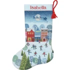 As Santa and his reindeer traverse the sky, a group of skaters enjoys some winter fun in the village in this fun cross stitch stocking! This Christmas counted cross stitch pattern features a beautiful array of thread colors that will add a personalized, festive touch to your Christmas decorations. Our needlepoint stocking kit also allows for personalization using the alphabet included in the instructions. Stocking finishing information also included. Completed cross stitch stocking pattern measures 16" long. Kit comes with presorted thread, 14 count light blue Aida cloth, felt for stocking back, 100% wool yarn for stocking hanger, needle, and instructions with an alphabet for personalizing. Design copyright of Jo Cave, courtesy of Advocate Art. This counted cross stitch kit comes with presorted thread, 14 count light blue Aida cloth, felt for stocking back, 100% wool yarn for stocking hanger, needle, and instructions with an alphabet for personalizing Completed Christmas cross stitch stocking measures 16" long This fun and festive counted cross stitch stocking pattern features a wintry village scene, complete with ice skaters and Santa's sleigh flying overhead! All of our stocking counted cross stitch sets include instructions with an easy-to-chart and key, detailed stitch diagrams, and steps for how to finish as a stocking - plus, the package includes a large color image of the finished design for reference Perfect as a fun and engaging Christmas craft activity for adults!