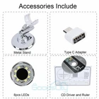 1600X 3in1 USB Digital Microscope for Electronic Accessories Coin Inspection US Ship within 24 hours. 100% New & Excellent Quality Strictly QC, Each item was fully checked before shipping FREE & FAST Shipping delivery with Tracking Number Introduction: This microscope lets you experience the thrill and discovery of a whole new microscopic world- totally hidden from the naked eye.which can magnify objects up to 1600 times of their original size and uses a dynamic image sensor and eight super bright white LED lights for creating detailed images like you've never seen before. This allows you to see even the smallest of details, in high resolution, directly on your computer screen. Details like skin pores, individual strands of cotton, the milky or amber clouds inside crystals or even the fine scratches on a collectible coin that would be impossible to detect with the naked eye, can easily be viewed by this amazing USB digital microscope. With the included software you can even save your images directly to your hard drive in JPG or video files for sharing with your friends, family, boss or client. There is even a handy zoom and photo capture button on the side for your convenience. If you're a professional user then you'll be happy to know that this software will even display a measurement scale to determine the exact size of the objects you are viewing for accurate appraisals or damage assessment. Features: *0X to 1600X continuous zoom, provide extremely detailed images. *Built-8 White LED Lights, adjustable illumination makes the magnified images clear and bright. This allows you to see even the smallest of details. *Advanced technology and excellent quality, high efficiency, good reliability and lifelong lasting time. *Professional, adjustable height Stand with Flexible Arm Observation Stand Continuous zoom is very convenient one-hand operation. *Easy-to-use Digital Microscope 1600x, when you once assembling the handheld microscope, just plug it in to a USB/Micro/Type-C port on your computer/Notebook/Tablet/Android Phones, install the software, and you can enjoy using it. *Add Micro USB & Type-c adapter for your convenience to use the microscope on your Android Phone. *Wide Applications-Use this device for examining fine jewelry, coins, stamps, electronics, Industrial Inspection, Computer Parts inspection, Telecom module inspection, scientific teaching tool, Laboratory Research, Medical analysis, School Research tool, Insect dissection examination, Plant dissection examination, Skin examination, Scalp examination, Textile Inspection, Jewelry Inspection, Collections/Coin Inspection, Printing Inspection, Reading Aid, Teacher Add as Project, Presentation or simply use it to have a little fun. Note: 1.Only support Anroid 4.0 system and above Anroid 4.0 system, does not support IOS system; 2.Your Anroid phone must support OTG function and external camera,please confirm carefully before ordering. 3.If you can not use it on your phone(some OTG can not support this endoscope),don't worry, you can use it on the computer.(Windows xp/7/8/10) Specifications: Interface:3 in 1(USB2.0+Micro USB+Type C) Image sensor: 0.3M HD CMOS Sensor Controller: High speed DSP Lens: Micro-Scope Lens Focus range: Manual Focus from 0-40mm Snap Shot: Software and Hardware Video capture resolution: 640x480 Still image capture resolution: 640x480, 480x320,320x240 Frame rate: Max. 30f/s Under 600 Lux Brightness Flicker control: 50Hz / 60Hz Video format: AVI Snap shot format: JEPG/BMP Light source: 8 White Light LED, 40000lm(with adjust controller on USB cable) Magnification ratio:0X to 1600X(Manually) Power supply: USB Port (5V DC) Software compatible: TWAIN/VFW System requirement: Pentium Computer with 700MHz & Above, 20M HD Space CD ROM Driver, 128MB RAM, Direct X VGA Card PC interface: USB2.0 & USB1.1 Supports system: Windows 2000/XP/Vista/7/8/10,MacOS X 10.8 or higher USB line length:Approx 145cm Metal stand height:12cm, Base diameter:7cm Microscope Length:11.2cm, Diameter:3.3cm Package includes: 1 x USB Digital Microscope(Cable with Window USB port and Anroid Micro USB port) 1 x Metal stand 1 x CD Driver 1 x Type C Adapter for Type C Android Phone 1 x Calibration Ruler Return Delivery details Payment FAQ's Contact us Return If you found that the item was damaged when you get it, pls contact us firstly Delivery details We Ship to Payment address ONLY. Payment PayPal accepted. FAQ's None Contact us Welcome to contact us for any question. On Dec 5, 2022 at 17:17:18 PST, seller added the following information: