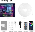 LED Strip Lights, RGB Neon Rope Lights,with APP Control/IR Remote,Music Sync,IP67 Outdoor LED Rope Lights Waterproof,DIY Design,for Gaming Room Living Bedroom Outdoors Decor 【High Brightness, Strong Ambience RGB Light Strip】These amazing RGB LED light strips have 108 light beads per meter, the upgraded LED and sidelight design makes the LED strip brighter and more uniformly illuminated than ordinary LED strips.adjusted to different brightness and change different colors to provide an immersive ambient experience and add a romantic touch to home decor. 【Music Sync and Remote Control】The neon strip works in sync with the music, the built-in micro of the controller can capture the sound, along with the music, our strip can change the light color according to the music, and pre-select your favorite color or mode from dynamic modes through the cell APP or the 44-key remote control, and remote control it freely in a straight line up to a range of 5 meters, it also has a timing function that allows you to customize the time of your lights to provide a convenient and flexible experience for you. 【Waterproof and Safe】Our neon strip light bar is not only suitable for indoor use, but also perfect for outdoor lighting with IP67 waterproof rating, which ensures long-term stable operation in outdoor environment. The neon LED strips are powered by 24V low voltage, which reduces the level of danger. Whether you want to create a unique party atmosphere or just want to add a splash of color to your home garden, our light strips are the perfect choice. (Controller is not waterproof) 【Easy to install and DIY】Neon strips are very flexible and can be bent into various patterns you want and cut to fit the length you need. Our neon strips can be fastened with snaps for easy installation and also easy to install and maintain. Just hold the strip in place and connect the power supply. 【Application Scenarios】APPLICATION SCENARIO Neon flex strip can be used in many scenes, bedroom lighting, hallway decoration, living room, game room, staircase, outdoor bar, window, display case, decorate your home with magical lighting effects, including all holiday scene patterns and seasonal scenes, all can create different atmosphere. 【Quality Assurance & 】All accessories of our LED neon rope lights are officially certified. the certified power adaptor was tested rigorously which is safe for use, the lights run at a low temperature and consume low energy. We are committed to providing quality products and SATISFACTION GUARANTEEd services. If you have any issues during installation, contact me directly and we will get it resolved within 24 hours. resolution or free are provided in quality-related issu Product Details Create a colorful and dynamic atmosphere RGB Neon LED Rope Lights:Bring Your Space to Life with Millions of Colors and Endless Possibilities,Making the simple life more colors and interesting.