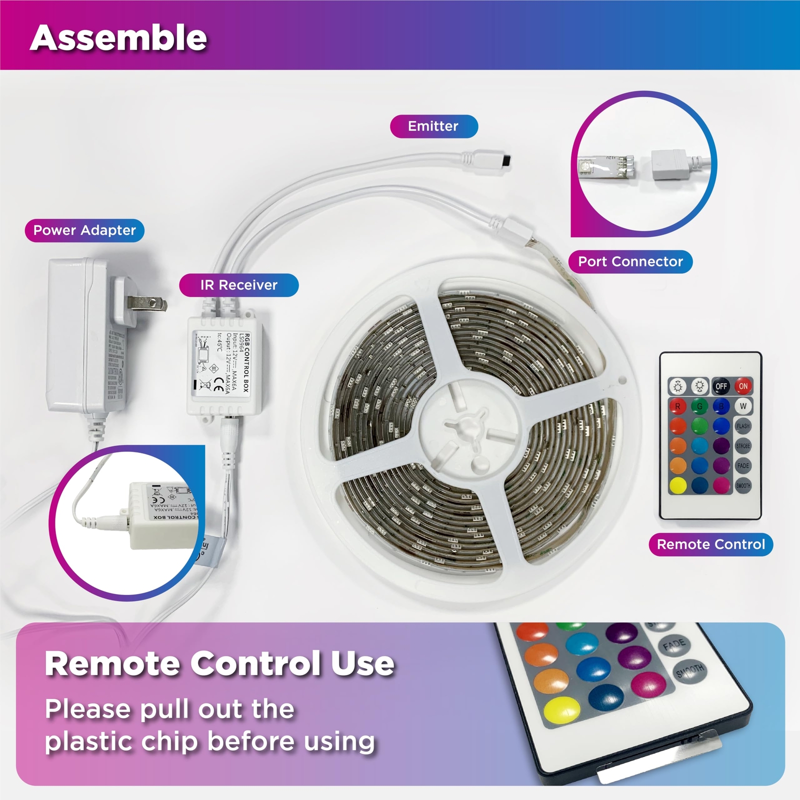 L5L3D LED Strip Lights, 16.4FT / 5M RGB Light Strip with Remote & Power Supply, PU Coating ETL 12V DC Adapter Color Changing Strip Lights for Bedroom, Kitchen, Monitor, TV, Home Decor LED STRIP LIGHTS COLOR CHANGING - 16.4ft RGB LED strip lights, with 150 high-brightness 5050 LED beads, allows the LED lights to be very colorful and durable. The brightness of the lights strip can be adjusted and there are 16 colors and 4 lighting modes(flash, fade, strobe, smooth) for your chosen by 24-key IR remote. There is also DIY options. LED STRIP LIGHTS WITH REMOTE - You can control the Led strip lights with 24-key IR remote control (remote range: 5m). Easily turn on/off strip lights, select colors, change modes(flash, fade, strobe, smooth) and adjust brightness. Install the 16ft led strip lights around the ceiling, under the cabinets, behind the bed frame and make your whole home come alive. 16FT LED LIGHT STRIP WITH ETL ADAPTER USAGE - RGB Strip lights length is 16.4 ft /5 m, it is flexible enough to be installed in many locations in your house. You can easily to bend the lights to the corner you wanted, such as under cabinet, mirrors, stairway, closets, shelf, TV wall, etc. It is also suitable for Anniversary, Birthday, Christmas, Easter, Graduation, Halloween, Homecoming, Independence Day, New Year, Thanksgiving, wedding, etc. EASY INSTALLATION - Strong 3M self-adhesive on the tape back, which can help to firmly install the light strips to any clean, dry surface. And the strip lights can be cut along the cutting marks on the copper sheet, without damaging the rest of the light strips. ENVIRONMENTAL PROTECTION - The LED strip light is Low carbon, no radiation, no flicker and no pollution. Safe, stable & qualified Flexible PCB and LEDs make it much safer to people and environment. SHIPPING Domestic Buyers - We ship within 3 business days of payment, usually sooner - We offer FREE shipping on all orders! - We only ship to the lower 48 states, no APO/FPO addresses or PO Boxes allowed - We have confidence in our products, but if you are not fully satisfied please contact us within 30 days of purchase and you will get full refund. International buyers – please note: Import duties, taxes, and charges aren't included in the item price or postage cost. These charges are the buyer's responsibility. - Please check with your country's customs office to determine what these additional costs will be prior to bidding or buying. * Order Cancellation Policy ** You can return a product for up to 30 days from the date you purchased it. 1. The seller reserves the right to cancel the special case only due to eBay cancellation fee. 2. The decision of seller is the final. 3. The seller will respond to the cancellation request within 2 business days. Please wait for the result of cancellation. 4. In case the cancellation is not completed by some reasons, the buyer can follow the options below to get the refund. 4.1 The buyer can reject the item when it arrives. 4.2 The buyer can send the item back to the seller within 30 days If the buyer receives item (USA Shipment ONLY). The seller will provide the FREE return label to the buyer when the buyer opens " Return Item" case on eBay by using the reason as "Change my mind" ONLY. 5. When buyer has placed the order. The order will be processed and completed by automatic warehouse system within 5 minutes. In case that buyer sends the cancellation request after 5 minutes of placing the order, the request will be rejected. **Sending direct message to cancel the order is not allowed for every case.* Return Policy For the return case - If buyer would like to return the items for refund or replacement, please CONTACT SELLER to receive the free return label from seller. The refund or replacement will be processed with the tracking number of return label which is provided by seller only. The other ways of return which are not approved by seller will not be processed for the refund or replacement.