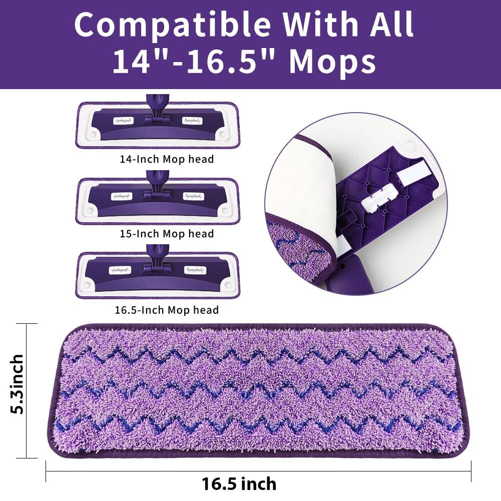 16.5 inch Microfiber Replacement Mop Pads Reusable - 3 Pack Flat Replacement Heads for Wet Or Dry Floor Cleaning Stripe Purple Pads Washable and Reusable-The back pad can be connected with the mop head by hook, which is convenient for disassembly.The mop pad can be washed over and over again, machine washable, hand washable, and then reused. Never use bleach. Universal Compatibility-This mop pad measures 5.3*16.5 inches. Universal size for most mop heads, don't worry about connecting to you. High Quality Microfiber-Spray mop pads adopt high quality microfiber, which can fully absorb pet fur, hair, sundries, dust, oil and other stubborn stains. It has strong decontamination ability and can bring a clean environment. Good Cleaning Strength-Microfiber mop pads can penetrate into cracks and crevices that ordinary mop pads cannot.Microfiber mop pad is very suitable for cleaning tiles, wax, linoleum, hardwood and laminate floors.Strong cleaning force.Microfiber mop pads can be very good dust adsorption. Good After-sales Service- We believe you will like thismop pads, but if you are not satisfied, please kindly tell us,we have guarantee within 20 days.In addition, the product has 180 days warranty.