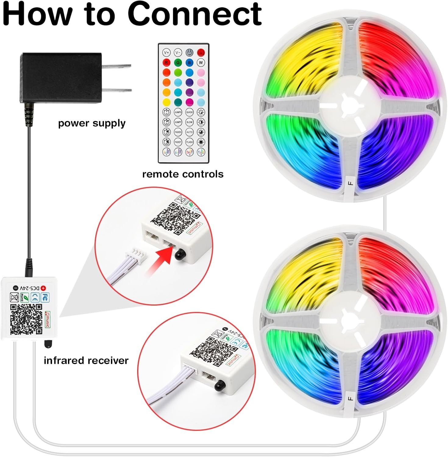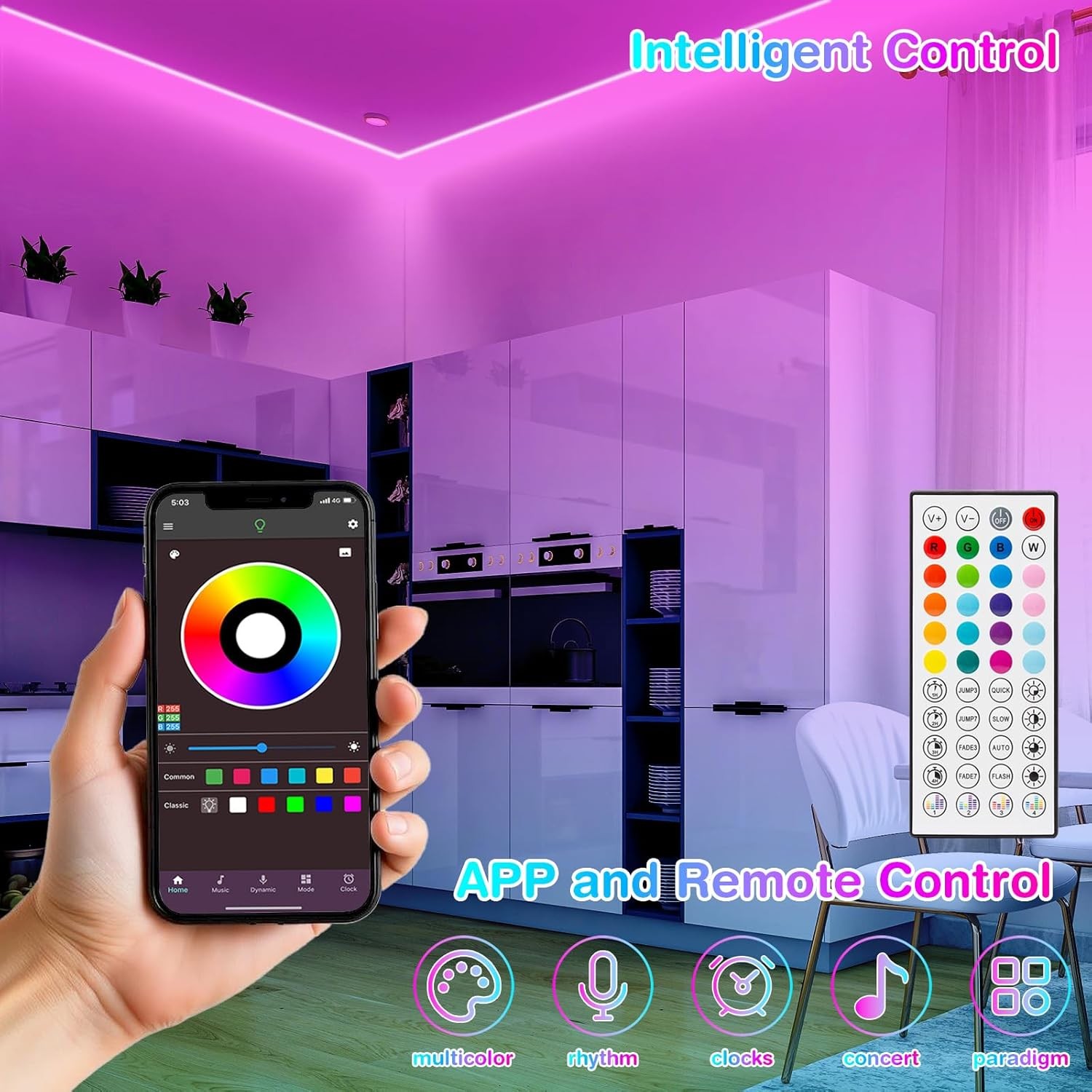 $ 2.59LED Strip Lights 100ft 50ft Music Sync Bluetooth 5050 RGB Room Light with Remote