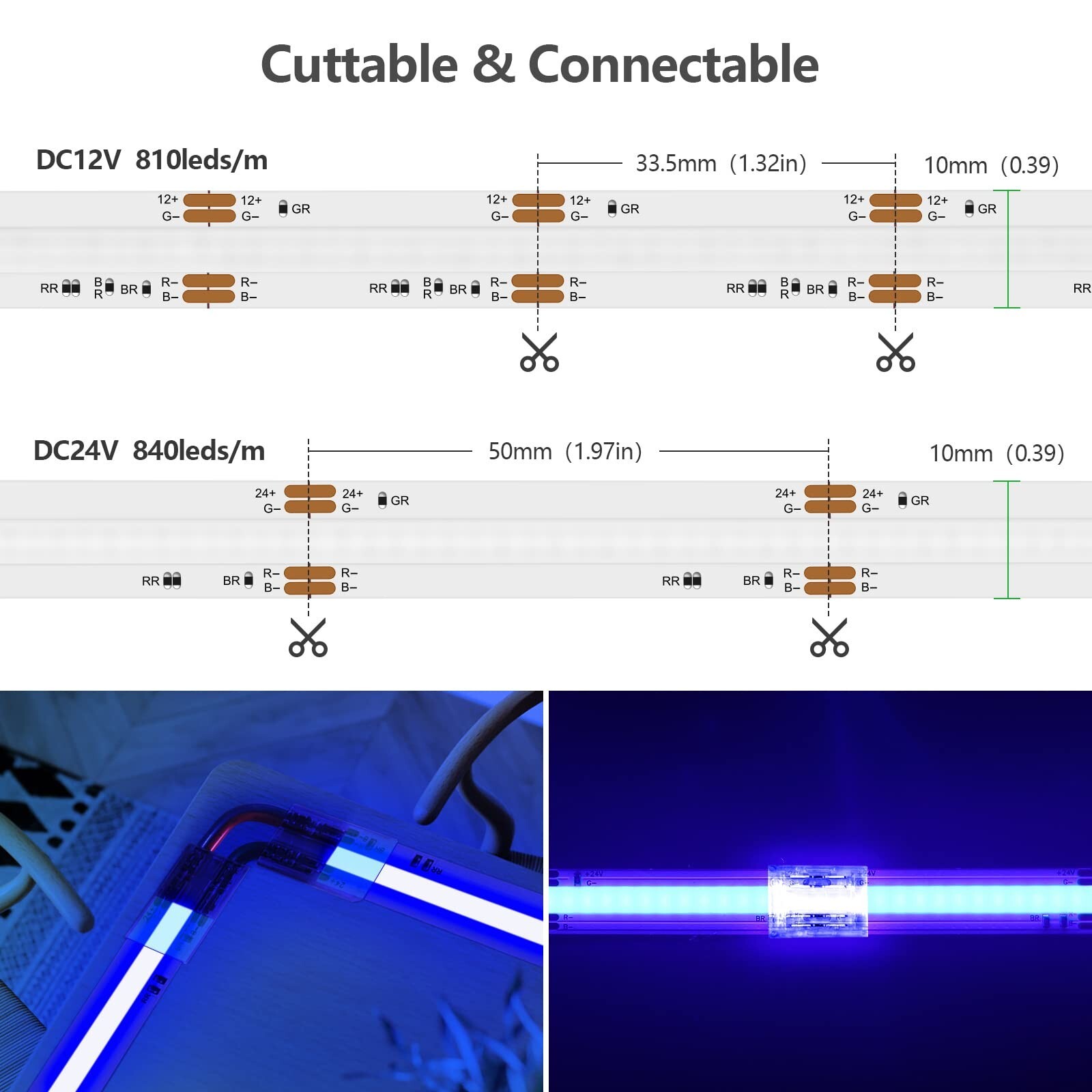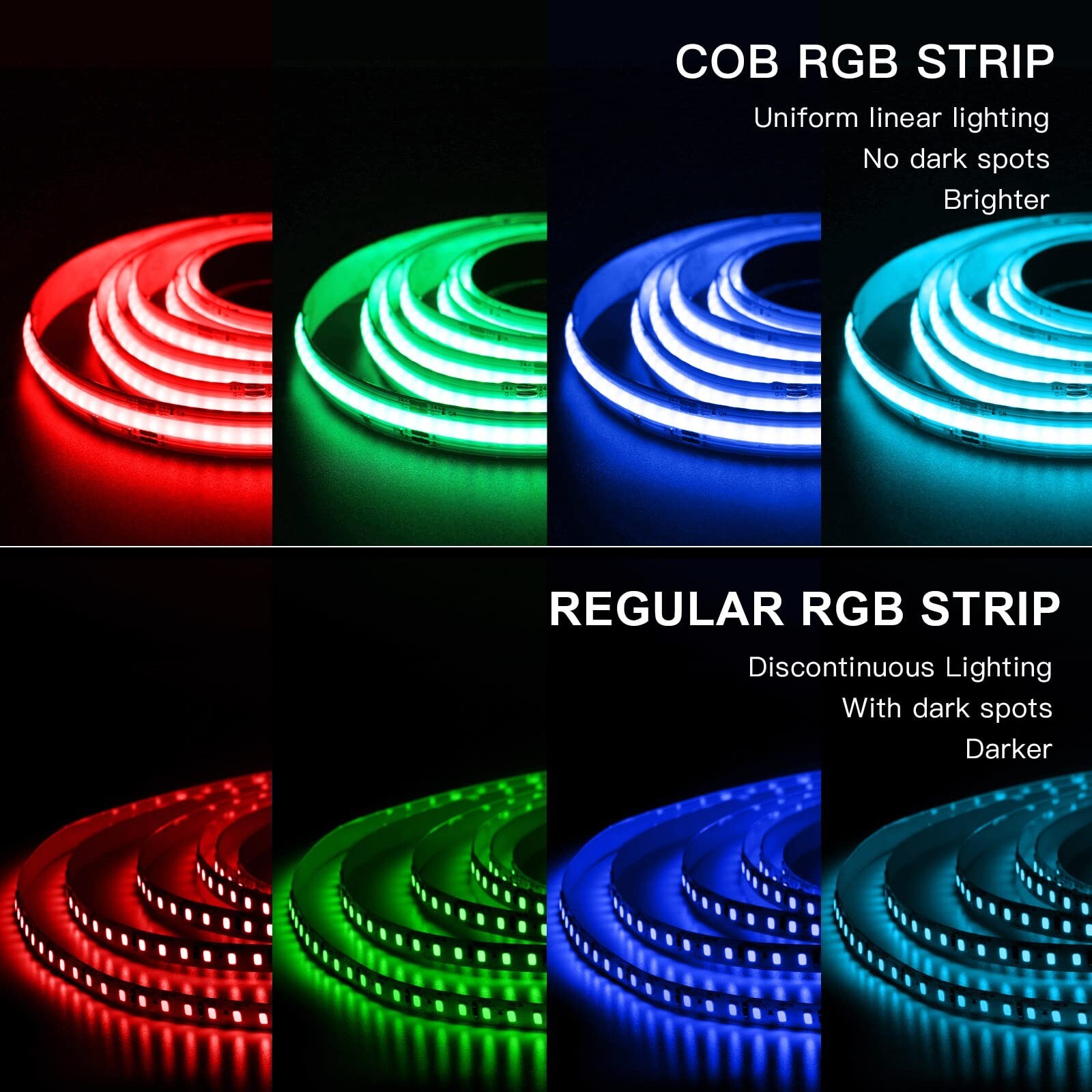 RGB COB Led Strip Lights 16.8ft, Not Included Controller & Adapte, 24V Ultra Bright 4200LEDs Flexible Led Light Strips, Color Changing Lights for Bedroom, Party, Indoor Home Decoration, UL Listed ✓ Free 60 Day Returns ✓ Free Express Shipping Description: Features: Ultra Brightness: 4200 LED chips on the 16.4 feet COB LED strip (840LEDs/m).The dense light-emitting unit allows the entire strip to have ultra-high brightness and achieve ultra-uniform lighting performance. Compared to SMD 2835 ,5050 and 5630, COB LED strips can provide better lighting effects. Safe & DurableRGB LED strip light is UL-LISTED which is safer for daily use.High-quality double-layer PCB board is durable for longer lifespan(over 50,000 hours).Compared to regular LED strip lights,the light is soft and uniform,which is safer to your eyes. Color ChangingBy combining three colors of red, blue, and green, the light band can emit 16 million different colors. With the controller, you can adjust the color and brightness of the light strip. Through WiFi, Bluetooth applications, and RF remote controls, you can also choose different lighting and music modes according to your hobbies and needs.It can work with Wi-Fi 2.4GHz , Bluetooth ,Bluetooth Mesh , Zigbee 3.0 ,Alea, Google Home ,RF etc LED controllers.(Not Included Controller) PowerPower supply is not included , Recommend DC24V3A power supply . The actual working power range of the light strip is 20W-65W. Red: 25W/5m, green: 24W/5m, blue: 20W/5m, mixed white (red+green+blue): 65W/5m. It is not recommended to use full brightness white light for a long time. Cuttable & LinkableLED light strips adopts a cuttable design.COB LED strip lights can be cut every 1.97in(50mm) along the cutting marks and the length of the light strip can be adjusted according to actual needs.If you need to reuse the cut light strip, you can also connect it through a connector. The connected light strip can be used normally without any defects. Easily Install: With strong adhesive, the strip lights can be firmly stick on wooden or lacquer wall and other clean surfaces. IP30 non-waterproof.Suitable for interior decoration. Wide Application: RGB COB led lights are suitable for bedroom, kitchen, cabinet, car, living room, bar, party, stair, mirror, corridor, DIY backlight, table lamp, toy light, DIY lighting,Christmas or wedding. Product Details: Color: RGB (Red, Green, Blue) Brand: Ocona Indoor/Outdoor Usage: Indoor Special Feature: Uniform Light, Brightness Adjustment, Color Changing Light Source Type: LED Power Source: DC Light Color: RGB Theme: Music Occasion: Wedding, Christmas Style: Modern Package Dimensions : 5.94 x 5.16 x 0.67 inches; 3.53 ounces Item model number : COB-LED-Strip-RGB Date First Available : April 30, 2022 Manufacturer : Ocona Customer Reviews: 4.2 4.2 out of 5 stars 5 ratings Color: RGB (Red, Green, Blue) Brand: Ocona Indoor/Outdoor Usage: Indoor Special Feature: Uniform Light, Brightness Adjustment, Color Changing Light Source Type: LED Power Source: DC Light Color: RGB Theme: Music Occasion: Wedding, Christmas Style: Modern Material: Plastic Controller Type: Remote Control Connectivity Protocol: Bluetooth, Wi-Fi, Zigbee Number of Light Sources: 4200 Voltage: 24 Volts (DC) Wattage: 65 watts Control Method: App Wireless Communication Technology: Wi-Fi, Bluetooth, Zigbee, RF UPC: 789789966652 Manufacturer: Ocona Part Number: COB-LED-Strip-RGB Item Weight: 3.52 ounces Package Dimensions: 5.94 x 5.16 x 0.67 inches Item model number: COB-LED-Strip-RGB Maximum Compatible Wattage: 65 Watts Specific Uses: Indoor use only Special Features: Uniform Light, Brightness Adjustment, Color Changing Batteries Included?: No Batteries Required?: No Luminous Flux: 4000 Lumen Average Life: 50000 Hours Date First Available: April 30, 2022