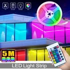 SMD RGB Led Strip Light (This package does not include power supply ) (Please contact us if you need power) Description: Color: RGB (Red Green Blue) Flash SMD View angle: 120° Cuttable: Every 3 LEDs Supply voltage: DC 12VOperating temperature: -20 to 60 degree LED quantity: 30LEDS/m, 150 LEDs Lifetime: 50,000+ hours Working Temperature: -20°C-60°CInput/Output: 12V Product Features: Maintenance free, easy intallation Ultra-bright but running at low temperature 6 DIY keys for memorizing 6 Color settings Long life 50,000 hours,Low power consumption Ultra-bright but working at insufficient temperature Self-adhesive back with Adhesive tape for secure and easy application Every 3-LED cutable without damaging the rest strip ,according to your requirement Super bright SMD LED, High Intensity and Reliable.Fully smooth and even diffuse light, solving the uneven light problem Ribbon Flexible curve around curves,Flexible LED strip 8 Light Pattern: Quick / Slow / Auto / Flash / 7 color fade change / 3 color fade change / 7 color jumpy change / 3 color jumpy change R / G / B increase and decrease control Application: Ideal for decoration of construction lines, landscape lighting, theme entertainment,Holiday sculpture of light, decorative figure, active signs, displays, showcasesAnd showcases, bar, disco, street, sidewalk, bridge, park, porch, staircase, railing, ceiling,
