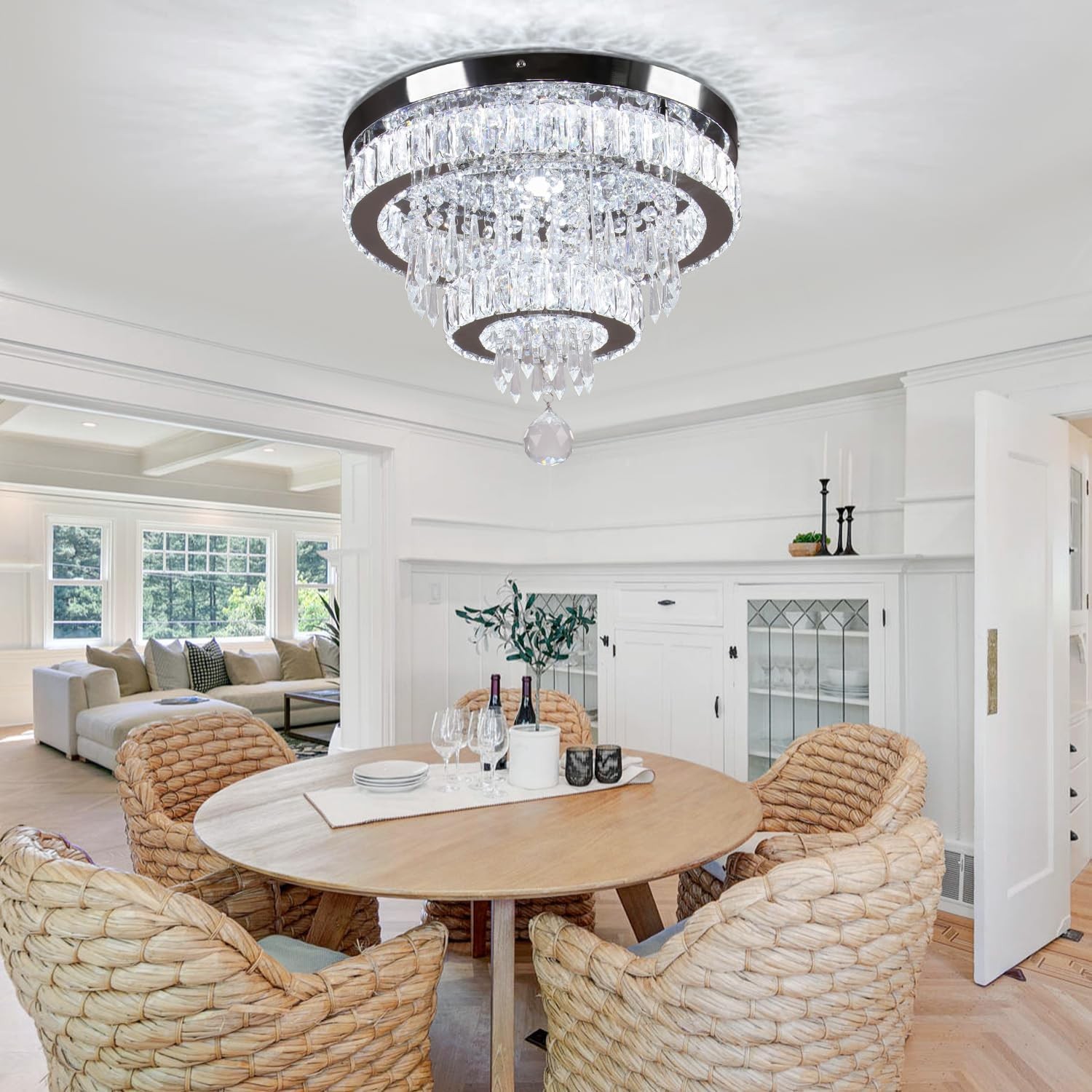 Finktonglan 16" Crystal Ceiling Light, Modern Chandeliers Multicolor Product Details Brand: Finktonglan Color: Multicolor Style: Modern Light fixture form: Chandelier Room Type: Lobby, Kitchen, Bedroom, Living Room, Home Office, Study Room, Dining Room Product Dimensions: 17.7"L x 17.7"W x 5.9"H Indoor/Outdoor Usage: Indoor Power Source: Corded Electric Installation Type: Flush Mount Special Feature: Energy Efficient, Dimmable Control Method: Remote Light Source Type: LED Finish Type: Polished Shade Material: Stainless Steel, Alloy Steel Number of Light Sources: 1 Voltage: 1.2E+2 Volts (AC) Light Color: Warm White, Cool Neutral Included Components: Remote Control Lighting Method: LED Item Weight: 11.73 Pounds Number of Items: 1 Wattage: 40 watts Bulb Base: E26 Controller Type: Remote Control Switch Type: Remote Control Unit Count: 1.0 Count Water Resistance Level: Not Water Resistant Brightness: 5500 lumen Efficiency: Energy Efficient Mounting Type: Ceiling Mount Shade Color: Multicolor Fixture Type: Non Removable Assembly Required: Yes Part Number: 2040-V Item Weight: 11.73 pounds Item model number: 2040-V Finish types: Polished Special Features: Energy Efficient, Dimmable Plug Format: A- US style Batteries Included?: No Batteries Required?: No Product Dimensions : 17.72 x 17.72 x 5.91 inches; 11.73 Pounds Item model number : 2040-V Brand: Finktonglan Color: Multicolor Style: Modern Light fixture form: Chandelier Room Type: Lobby, Kitchen, Bedroom, Living Room, Home Office, Study Room, Dining Room Dimmable Chandeliers: One remote in hand, all function in control, you can easily choose between cool white&neutral light&warm white, also you can adjust the brightness and color temperature with just one click on the button Crystal Ceiling Chandelier-Stainless steel makes a firm and stable base, and K9 crystal also makes a transparent body for the bright LED bulbs Ceiling Light: crystal ceiling lamp max power 55W, and the LED energy-saving light source beads, have adjustable brightness and color temperature (800K-6500K). Easy Installation: Instructions and all mounting hardware are included for quick and easy installation. Please do not hesitate to contact us if there is any quality issue or you are not happy with your purchase. INSTALLATION DETAILS-Steel base measurement 15.7*15.7*1 inch, the length of the five crystal hanging layer is:3.9", 7.8", 11.8", 13.7", 15.7"