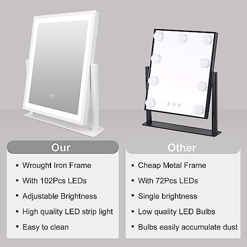 Return Policy Fast Delivery Trusted seller Classic 16 in Lighted Vanity Mirror Led Makeup Mirror with Light White Tabletop Mount Home Mirror with Dimmable LED Lights Thanksgiving Wedding Birthday Present Touch Control 360 Rotation Product Description Dimmable Touch Control:LED one-button touch to adjust 3 colors (3000K/4000K/6000K) dimming (10%-100%) to make your makeup mirror lifelike without harm your eyes;Long press to change brightness helps you show your beautiful self Sturdy Frame and HD Silver Mirror:Iron frame and base, safe and reliable; HD silver mirror design, higher image clarity, natural and soft light; Our makeup mirror makes makeup and shaving easier 360°Rotation and 5V Power Cord: 360-degree rotation can fix at any position to give you the perfect viewing angle; The 5V/1A power cord can only be connected to a power source for use; not rechargeable Perfect Present for Her:The desk mirror with light can be an elegant decoration for both your bedroom and vanity area;also the best present for her; for Birthday;Valentine's Day; Mother's Day; Christmas and dorm room essentials for college students What We Do for Our Customer:The mirror comes with customized packaging to protect in all aspects. If t are any problems when you receive the makeup mirror, please let us know ,we will back to you within 24 hours Shipping Returns Payment Shipping Shipping is FREE to all addresses other than APO/PO boxes in the lower 48 states. All our stock ships from US-based warehouses. Shipped via USPS or UPS (depending on location and package weight) Unless stated otherwise, all orders will ship within 24-72 hours of your payment being processed. Check our feedback to see the great reviews of FAST shipping we offer. Returns Seller does not accept returns Payment We currently accept payment via eBay managed payments only. Once payment is cleared, we will dispatch your shipment within 1-3 business days. Please refer to the "Shipping" tab for more information regarding shipping speed to your destination.