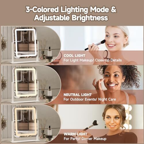 12-Inch LED Lighted Makeup Mirror with 3 Color Modes - White Vanity Mirror