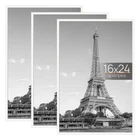SIZE: 16x24 poster frame is designed in a modern style and is suitable for hanging on any wall in home, office, photo studio, art gallery, school exhibition hall. You can use them for Video Game, Movie posters to redecorate anywhere. Upgraded Material: These light-weight picture frames use upgraded plastic material, Scratch-proof and durable. And with thicker plastic cover that keep posters better preserved (Wipe the frame with wet tissue or rag before use to make it look more beautiful on the wall). EASY to INSTALL: 16 x 24 poster frame is very convenient to install, 4 frame strips can be easily assembled by sliding together. Poster frame back comes with 2 pcs sturdy hangers that can be hung vertically or horizontally from the wall, Which quickly turn a poster to artwork. PRECIOUS GIFT: The frame is suitable for any style of photo, such as art prints, children's drawing art. It is the perfect gift for your family or friends on anniversaries, weddings, birthdays, Mother's Day, Father's Day, Thanksgiving, Christmas. SECURE PACKAGE:Set of 3 frames 16 x 24 were packaged well, every photo frame is plastic-sealed individually, 3 picture frames are put together into a paper box tightly to ensure safe shipping and avoid receiving damaged products.