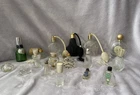 17 old vintage perfume glass bottles, 4 are with atomizer tops, I have not tried to clean them up, but all are in good shape for their age, no chips or cracks.