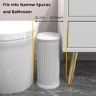 【White Bathroom Trash Can】The 1.8 gallons small stainless steel trash can made of durable rust-resistant finish, non-toxic, rust-proof, fingerprint-proof, and easy to wash and smudges keeping a clean and nice look for use in damp bathrooms. 【Dog-Proof Trash Can】The pop-up design lid is simple and convenient, just press the button on the lid to open and close. The secure press lid keeps pets out of the trash and traps smell inside, ensuring your space always smells fresh and clean. 【Perfect for Narrow Places】This 1.8 gallon step trash can is slim design, measuring 10.55" x 6.57" x 12.59", only 6.57 inch wide, the rectangular shape is designed to fit into tight spaces, such as small kitchens, bedrooms, and bathrooms. Are you still annoyed that the narrow space in the room being wasted? Get it now to improve the space utilization. 【Removable Inner Bucket】Inner bucket can be easily removed to clean or waste disposal. It is equipped with a garbage bag fixing hole to neatly hide the extra trash bag, enhancing its aesthetic appeal for your home and office. 【Includes 60 Garbege Bags】60 drawstring garbage bags includ.If you have any quality problems with the trash can, we will give you a 100% satisfactory reply, and the customer service team is at your service at any time.