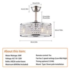 18"Ceiling Fan Lamp Crystal LED Caged Flush Mount Chandelier Bladeless w/ Remote 18'' Cage Ceiling Fan Light Crystal LampShade Fan Chandiler W/ Remote ✦ About this item 【Unique and safe novel design】 Crystal shade, Unique to say the least, thecomposition of cage ceiling fan is quite striking, combining modernity and elegance in one. The exterior crystal lampshade a stylish theme while protecting the light bulb and the central fan blade. It's perfect for a loft or office space, hang in your eating area and enjoy the cool breeze. Light & Fan—This ceiling fan with is designed for who need marvelous update for your house. Suit for ceiling from 7.5-11.5 feet, and room from 8-15㎡like children room, bedroom, kitchen island or dinning room. Easy to install: hard wire. perfect design to illuminate your space, whether it is a kitchen island, dining room, bedroom, foyer or any other place. 【Remote Control】 The Industrial ceiling fan lights fixture with 3-speed adjustment (low/medium/high) and 3 fan timing options (1/2/4H) sleep shutdown about multi-function remote control. The fan and lights can be controlled separately, which can control your ceiling fan quickly and easily!(max distance of 20 meters). 3 Gear Wind—The enclosed ceiling fan speed vary from soft to cool, match daily needs; ABS fan blades, durable, lightweight and easy to clean. Timing Function—Smart timing set to automatically POWER OFF light and fan after you fall asleep. Mute Motor—Indoor/Outdoor ceiling fan is equipped with a whisper wind motor which makes no noise, stay away from any noise interference while providing a quiet and comfortable environment. ✦ Dimensions Fixture Height: 7.08" (18 cm) Fixture Width: 18" (46cm) ✦Bulb Information Bulb requirements: use (4) E26bulbs, maximum 60watts, options include incandescent, fluorescent, LED, halogen, etc. (bulbs are not included) Wattage: Max 60W Voltage: AC110-120V Remote control: yes ✦Material and Colour Material: Nickel-plated metal +crystal ✦ Package Included 1 *Fan Light (Bulbs Not Included) 2*Down rods (12CM & 25CM) 1 * Accessories package 1 * User Manual Easy to install: surface mounted. Products include English manuals, remote control and installation instructions, with the provided bracket, providing easier installation and detailed installation instructions. Applicable scenarios: The chandelier is suitable for home and commercial spaces,such as living room, dining room, kitchen island, bedroom, foyer, farmhouse , bar, restaurant, gallery, exhibition room, hotel, coffee shop, office。 ✦Suggestion: 1. For a safe and secure installation, please ensure that the electrical box to which this fixture will be mounted is properly attached to a structural member of the building. 2. All wires are connected. When unpacking, be careful not to pull with wires as a bad connection may result. 3. Do not connect electricity until your fixture is fully assembled. Payment Delivery details Terms of sales About us Contact us Payment We accept ebay payment 。 Fees such as import duties, taxes are not included in the item price or shipping costs. These charges are the buyer's responsibility. Delivery details Shipping: 2-9 working days to: USA Terms of sales We maintain high standards of excellence and strive for hundred percent customer satisfaction. Feedback is very important to us. We hope that you contact us immediately before you give neutral or negative feedback, so that we can address your concerns. It is impossible to address issues if we do not know about them! About us Your satis faction is our ultimate goal. We work hard to earn your trust and future business. Our certified technicians have tested each item before shipping. The unit comes with 1 year limited warranty on all manufacturing defects. a) If you receive a defective item, you may return it or ask for a discount. Please contact us within 14 days after you receive the package. b) What you returned must be intact and in its original packaging as re? u. Customer is responsible for shipping costs of the returned item. c) We will cover the cost of shipping back t with the shipping rate indicated in the registration page. We will send you a new unit or refund the full payment you paid. Thank you. Contact us Business Hour Business Hour: Monday To Friday: 8:30 AM to 5:00 PM (Beijing China time) Due to time zones, our reply to your questions may not be immediately. But within above working time, we will reply your email within 24 hours. If it's non-workdays, please kindly be patient and wait till Monday. Please contact us with ebay message. Please feel free to contact us if you have any questions. Monday To Friday: 8:30 AM to 5:00 PM (Beijing China time) Due to time zones, our reply to your questions may not be immediately. But within above working time, we will reply your email within 24 hours. If it's non-workdays, please kindly be patient and wait till Monday. Please contact us with ebay message. Please feel free to contact us if you have any questions. On Mar 2, 2025 at 18:26:30 PST, seller added the following information: