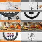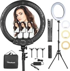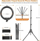 18 Ring Light with Tripod Stand 3 Phone Holders Dimmable LED Ring Light Kit Intelligent and quick color change - INKELTECH Ring Light can adjust the color temperature via knob or remote without using color filters. Achieve cold white light or warm light to hide blemishes and change skin tones quickly and easily. LED SMD design and 240PCS LED beads on our Circle Light offers more light for your Camera Photography, Live Stream, Beauty Makeup, Selfies and Videos. Adjustable tripod stand - The light ring stand is made of aluminum alloy, more durable. The bottom three-legged design and solid locking system keeps all your stuff in safe. Adjustable height ranges from 18.9”- 71”/ 48cm - 181cm. It can be adjusted to any length between to match your needs. Bring more convenience for your shooting. IR remote - INKELTECH Ring Lights are controlled via the IR remote controller or the knob on the back of the ring. Change the color temperature (2700K - 6500K) and brightness (1% - 100%) of the INKELTECH Ring Lights from up to 2.5 meters away (98”) with our IR Remote, super user friendly!(Please note, when you use the remote to control the ring light, make sure the knob at back of the light is turned on) Flexible Phone holder & USB Charging port - Each INKELTECH Ring Light kit have 3 360 degree phone holders that effortlessly helps you capture different levels of brightness and angles of lighting! The phone holder is suitable for most smart phones including iPhone, Samsung and Huawei. INKELTECH Ring Light resolved the problem that your phone is out of power when you are live streaming. You can charge your phone through the USB port on the back of the ring while you are taking videos. Kit includes - Inside of your package, you will receive: LED Light Ring Body (18”/ 45.5cm) x1, Tripod Stand (18.9”- 71”/ 48cm - 181cm) x1, IR Remote Control x1, Flexible Phone Holder x 3, Power Lead x1, Durable Travel Bag x1 and paper instructions for quick and easy setup. Please feel free to contact us if you have any questions! We are happy to help and would appreciate that very much. ------------------------------------------------------------------------------------------ Shipping Policy: Domestic lower 48 states shipping is free and expedited. Shipping is also free to the rest US states and US Protectorates including Puerto Rico, Alaska, Hawaii, APO/FPO, but delivery times are longer than usual. If you need your order by a specific date please contact us before you make the purchase for a delivery estimate. ------------------------------------------------------------------------------------------ Return Policy: Your satisfaction is guaranteed! If for any reason you are unhappy with your item, just return it within 30 days for a full refund. Please contact us prior to initiating a return so that we can issue you a refund authorization.
