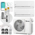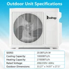 listing template Visit our store Sigh up for email 18000 BTU Ductless Split Air Conditioner W/ Heating 2 Zone 9000 + 9000 BTU WIFI ZOKOP Dual 2 Zone Ductless Mini Split Air Conditioner Heat Pump System, 19 SEER2 Ductless AC with 2 Indoor Air Handlers, 1 Outdoor Condenser, 25ft Installation Kit (9K+9K) Introductions: ZOKOP smart Split Type Type Inverter Air Conditioners with heating function are made with high quality compressor, high speed pure copper motor & inner spiral copper tube which are powerful to quickly cool down / warm your home, office, garage or apartment for maximum comfort in quiet operation, perfect appliance in hot Summer or cold Winter. Comparing with others, machine featured with high SEER grade, which means that it is more energy efficient and much money saving! This unit also has Sleep, Turbo, ECO, Mute and Timer functions. These functions help you enjoy the true individual comfort. Let the ZOKOP Mini Split Air Conditioner 2-Zone be the solution to your home's heating and cooling needs. Features: [MULTIPLE ROOMS] Comes with 2 indoor air handlers 9,000 BTU + 9,000 BTU with separate controller for individual rooms and 1 outdoor condenser. Enjoy individual temperature controls in each room for ideal climate control. This unit provides cooling and heating for up to 800 Sq.Ft (each indoor unit recommended area 400 Sq. Ft) and able to work in environments as low as 5 degrees Fahrenheit. 2 pcs 24.6ft copper pipes (Standard size 1/4" & 3/8" outer dimension) and 2 installation kits included. The length for drain pipe is 78.7". Featured with Cooling, Heating, Dehumidifying and Fan only modes in one compact unit. It is ideal for using in home's bedroom, living roo, kitchen, office, apartment, garage and so on. [Energy Saving] ZOKOP the speed of the air conditioner equipped with frequency converter directly affects the service efficiency of the air conditioner. The frequency converter is a control system used to control & adjust the speed of the compressor to make it always in the best speed state, so as to improve the energy efficiency ratio (at least 30% more energy-saving than the conventional air conditioner). This 19 SEER2, 2*9000BTU, 208/230V~60Hz, AHRI Certified AC unit with a heat pump(up to 5℉/-15℃) is featured high quality compressor for more efficient cooling and longer working life; Higher SEER grade & Eco-friendly design which leads you for money saving ( please confirm voltage before making purchase) . [Quiet Cooler & Heater] Ultra Silent at only 27-42 dB(A) and beautifully built adds a touch of elegant charm to your room.In sleeping & mute mode, It's able to maintain the temperature while you are sleeping. And you can use the 24-hour timer in combination to free you from additional worries. Featured with 4-way swing function, unit provides scientific airflow in your room to suit your comforts in just a few minutes.Best choice to decorate your home. [Smart Operation] Operating this conditioner is an easy-understanding and enjoyable cooling experience (61-88degree Fahrenheit ). We can set all functions on remote control (Fan Speed Selection, Sleep Mode, 24 Hour Timer, ECO Mode, Turbo Mode, and Mute Mode). Built-in microprocessor chip & sensor in the remote controller makes it more convenient to operate the air conditioner from a distance. Digital LED display controls offer precise temperature adjustments and the remote control lets you control the air conditioner from across the room. [Washable Air Filter] This indoor AC machine comes with a permanently washable and easy cleaning air filter. Keep your air conditioner running more efficiently by cleaning the filter once a month. Specifications : 2*I ndoo r Unit : 1. Color: White 2. Power Supply: 208/230V, 60Hz 3. Cooling : Rated Capacity: 9000Btu/h Rated SEER2: 19Btu/W.h Rated EER2: 10Btu/W.h 4. Heating: Rated Capacity: 10000Btu/h HSPF2 Rating (Region IV): 8.5Btu/W.h 5. Operation temperature: (16~31)degree Celsius/(61~88)degree Fahrenheit 6. Use the air conditioner in the following temperature conditions. Indoor(cooling/heating): 17 ~32degree Celsius(63 ~90degree Fahrenheit)/0 ~27degree Celsius(32 ~80degree Fahrenheit) Outdoor(cooling/heating): 15 ~55degree Celsius(59 ~131degree Fahrenheit)/-15 ~24degree Celsius(5 ~75 degree Fahrenheit) 7. Moisture removal: 1.1L/h 8. Indoor air circulation/Hi : 600m³/h 9. Indoor noise level at cooling(Turbo/High/Med./Low/Mute): 42/39/34/29/27dB(A) 10. Application Area: Up to 400 sq.ft 11. Certificate : AHRI, ETL 12. Indoor Dimensions: 81.1x29.2x20.5cm(31.9x11.5x8.1inch) 13. Indoor Package dimensions: 88.5x36.6x27.8cm(34.8x14.4x10.9inch) 14. Indoor Net weight: 9.5kg/20.9Ibs 15. Indoor Gross weight: 12.7kg/28Ibs 1* Outdoor Unit : 1. Cooling Capacity: 18000BTU/h 2. Heating Capacity: 20000BTU/h 3. SEER2: 20.0BTU/h.W 4. Rated Voltage: 208/230V~ 5. Rated Frequency: 60Hz 6. Refrigerant type: R410A/1850g/65.3ozs 7. Outdoor Dimensions: 84.5×38×69.9cm(33.27x14.97x27.5inch) 8. Outdoor Package dimensions: 96×43×75cm(37.79x16.92x29.53inch) 9. Outdoor Net weight: 44kg/97lbs 10. Outdoor Gross weight: 47.5kg/104.7lbs 2*Copper pipes : 1. Connecting Pipe: Gas 3/8''-24.6FT/7.5M Liquid 1/4''-24.6FT/7.5M 2. Signal Cable Length: 24.6FT/7.5M 3. Drain Hose:6.6FT/2M Package Includes : 2* Indoor box includes : 1 x Indoor Unit 1 x Remote Control 1 x Screw Pack 1* Outdoor box includes: 1 x Outdoor Unit 4 x outdoor feet rubber 2*Copper pipes box includes: 1 x Copper pipes set(24.6FT) 1 x Signal Cable(24.6FT/7.5M) 1 x Drain pipe(6.6FT) 1 x Drain pipe adapter 2 x Sealant 2 x Wall sleeve cover 2 x Pipe tape 1 x Insulation pipe 1 x Wall sleeve You might like this more>> 6-Tier Bamboo Bookshelf Adjustable Storage Shelf Rack $49.99 Professional Cello 4/4 Full Size BassWood Set with Bag $148.99 Stainless Steel 4 Tier Steamer Cooker Steam Pot Kitchen Food $39.29 110 LB x 0.1oz All-In-One Digital Postal Shipping Scale 50kg $22.79 2Pack 10000LM LED Zoomable Flashlight Torch Lamp Light $9.99 Mini Exercise Bike Des