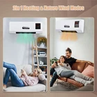 Features: 2 in 1 Heating & Nature Wind Function: This electric heater and fan features both heating and nature fan functions, and with 3 modes in fan, low heating and high heating, making it a versatile solution for year-round comfort. Wall Mounted Design: The electric heater and fan combo is designed for easy wall mount installation, allowing you to save floor space and keep your room clutter-free. Timing Function: With a built-in 0-6 hours timer function, you can set the heater with fan to turn on or off at specific times, helping you save energy and reduce your electricity bill. Temperature Range: This space heater has a wide temperature range, 25-40°C in heating mode and 16-40°C in natural wind mode, allowing you to set the temperature to your desired level for maximum comfort. Widely Uses: This heater fan combo with remote is suitable for a wide range of applications, including homes, offices, dormitory, and more. Whether you need to cool down or heat up the room or space, this unit has you covered. Specification: Product material: ABS Product size: 55*20*11cm / 21.65*7.87*4.33in Product weight: 2.6kg / 5.73lb Product color: White Remote control battery: 3.0V 150mAh CR1220 lithium button cell battery Cable length: 1m / 3.28ft Rated input: 1800W Timing range: 0-6 hours Temperature: Heating: 25-40°C, natural wind: 16-40°C Plug type: US plug (110V) Note: It looks like an air conditioner in appearance, but it is not a real air conditioner, but a heating+natural air fan. Packing List: 1 x Heater Fan 1 x Remote Control 1set x Screws 1 x Manual