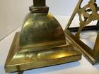 Antique Brass & Slag glass Shade- 5” square and 4.5” lamp base 16.5” total height. Really long cord. Maybe 15ft. Has not been rewired but it is recommended. 4 white glass inserts for the shade. - There is some chipping around the edges. It doesn’t show, it’s on the inside. Please look at the photos for a better description. The lamp base has some dents that are also shown in the photos. The shade could use soldering on one corner- shown in photos. Sold AS IS. No returns please. Thanks for looking!! 😀 StruttonStuff