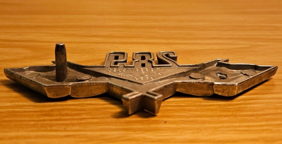 This is a genuine OEM front fender cross flags emblem from 1965/1966 Ford Fairlane V289. It is a vintage part with no universal fitment. The emblem is made in the United States and has the OE/OEM part number C5AB-16237-A/C5OB-16237-A, while the manufacturer part number is also C5AB-16237-A/C5OB-16237-A. This emblem is perfect for collectors or enthusiasts of vintage Ford cars. 1965-1966 Ford Fairlane 289 Emblem. This is in amazing condition! The front has almost not scratches, with only a few minor spots of corrosion (smaller than the tip of a pen). Missing one of the two mounting pins, but could still be reused. P/N - C5AB-16237-A C5OB-16237-A Any questions? Feel free to ask! Location : 48