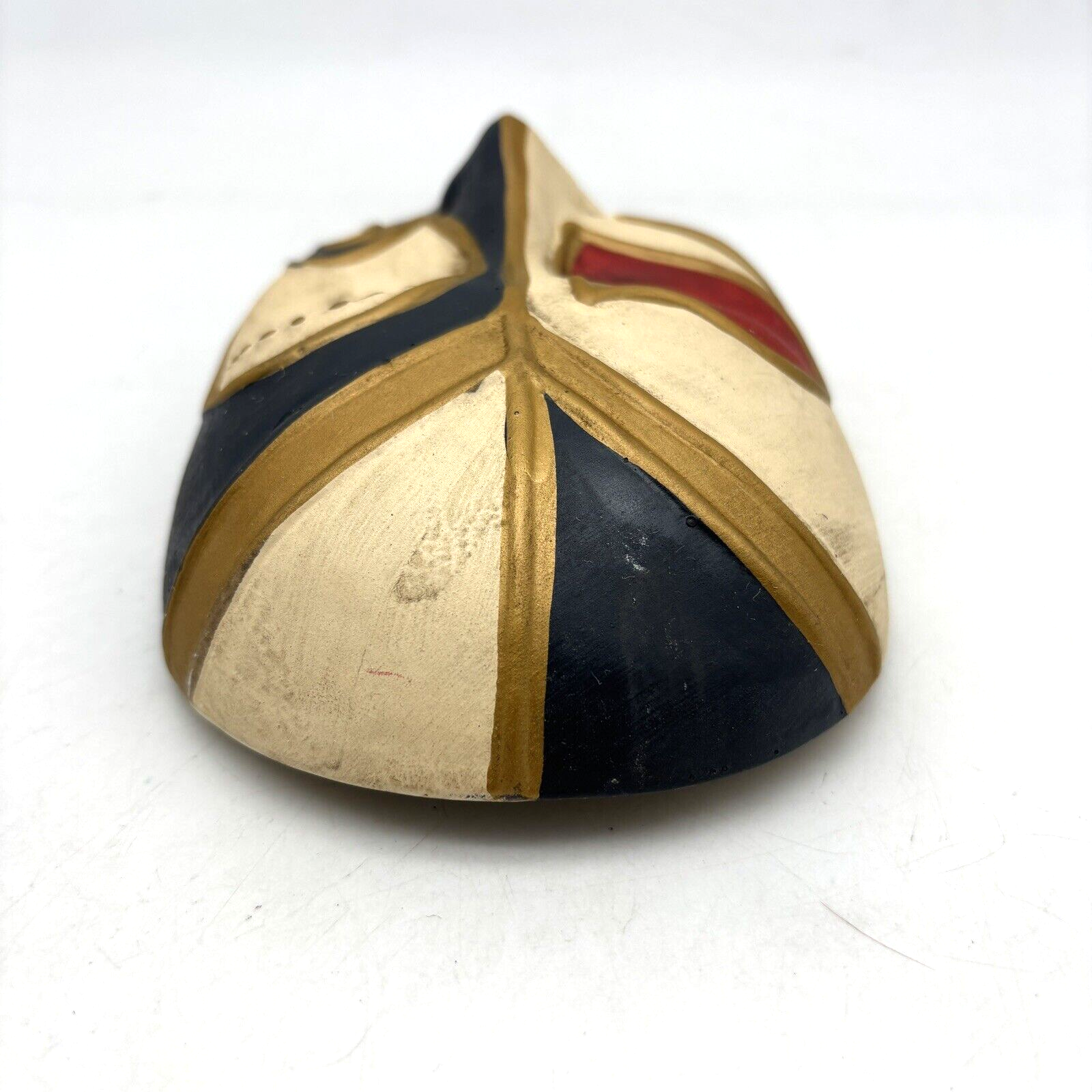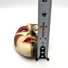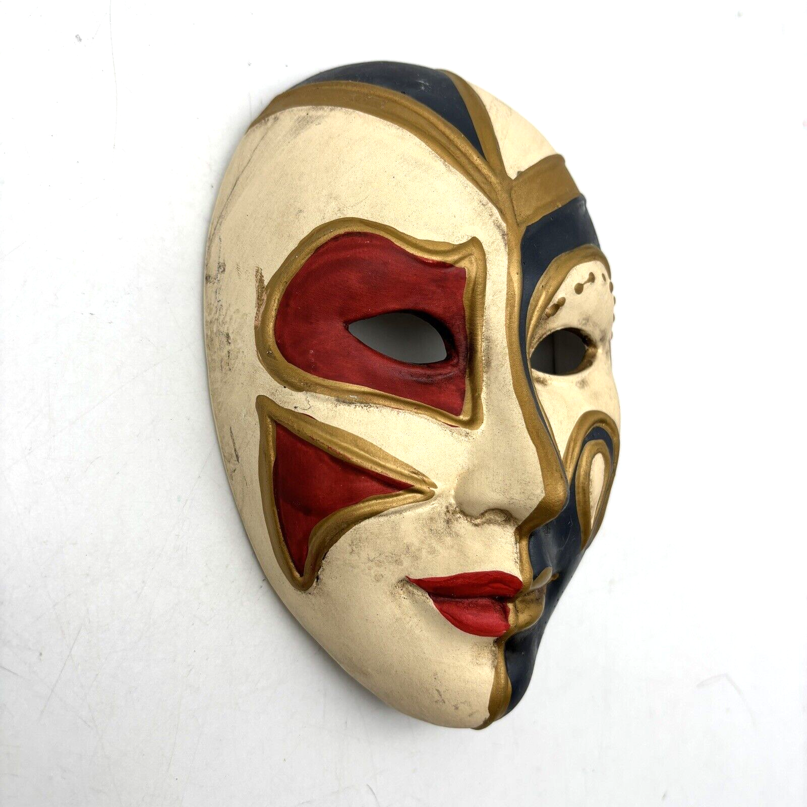 1980s Handmade Red Blue Gold Venetian Carnival Matte Wall Mask Unsigned Measurements: 7" tall 4 1/4" wide 3" deep Vintage pre owned condition. Very gently owned. Clean and from a smoke free home.