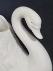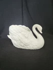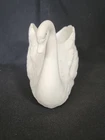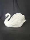 The 1988 FTDA White Swan Bird Porcelain Floral Arrangement Planter from Taiwan is a small planter made of porcelain/ceramic. It features a White Swan design and is suitable for use on windows or furniture. With a matte finish, this vintage item measures 8 inches in length, 4.75 inches in height, and 3.75 inches in width. It is ideal for bird or animal-themed decor in any room.