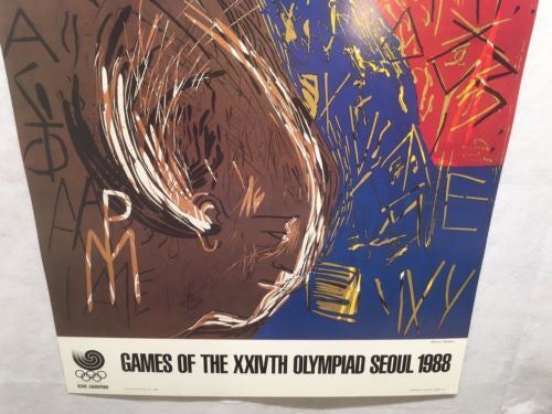 Vintage 1988 Original Seoul Olympics Mimmo Paladino "Olympia" Poster Korea Poster is in very good condition for being almost 30 years old. Came from a local estate. Poster measures 24 inches by 36 inches.