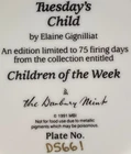 1991 "Tuesday's Child" Vintage Limited Edition Plate - Danbury Mint [INCLUDES CERTIFICATE OF AUTHENTICITY] P late #: D5661 Art by Elaine Gignilliat " Children Of The Week " Series NOT TO BE USED FOR FOOD. DECORATION PURPOSES ONLY. [RMP-DC6]
